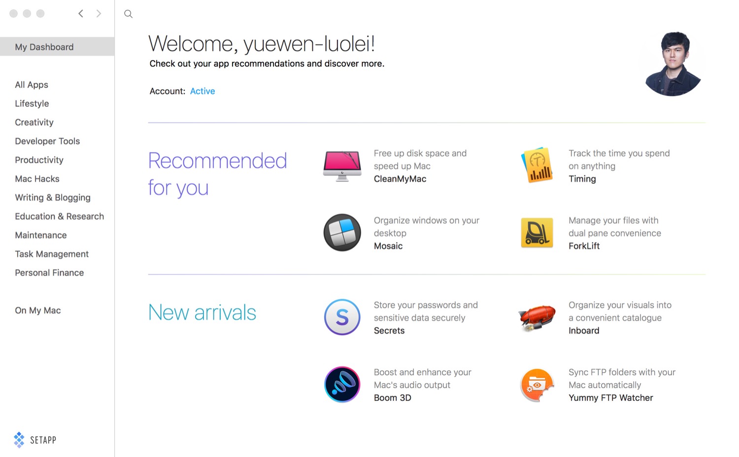 我的主要工作环境主要是Mac,过去还是学生的时候,经常要为了找某一款软件,搜索各种破解网站。去年中期,看到Setapp的免费试用邀请,就申请了体验。后来开始收费,想着用户体验不错,就一直用了下来。