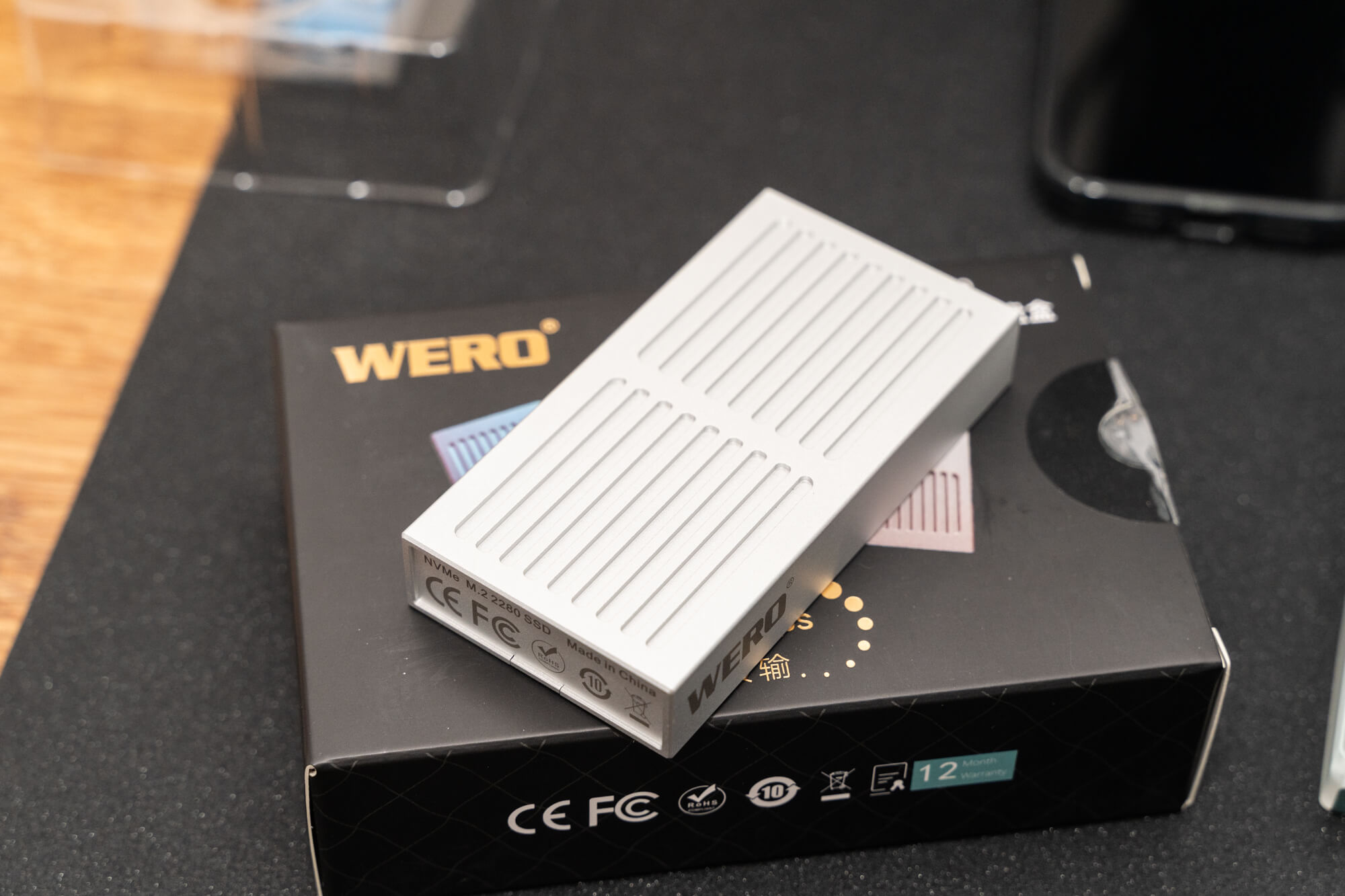 盒子插入 WERO 硬盘盒,WERO 盒子有附赠螺丝刀和散热贴。M2 硬盘发热量大,WERO 这种盒子铝合金散热还是有必要的。