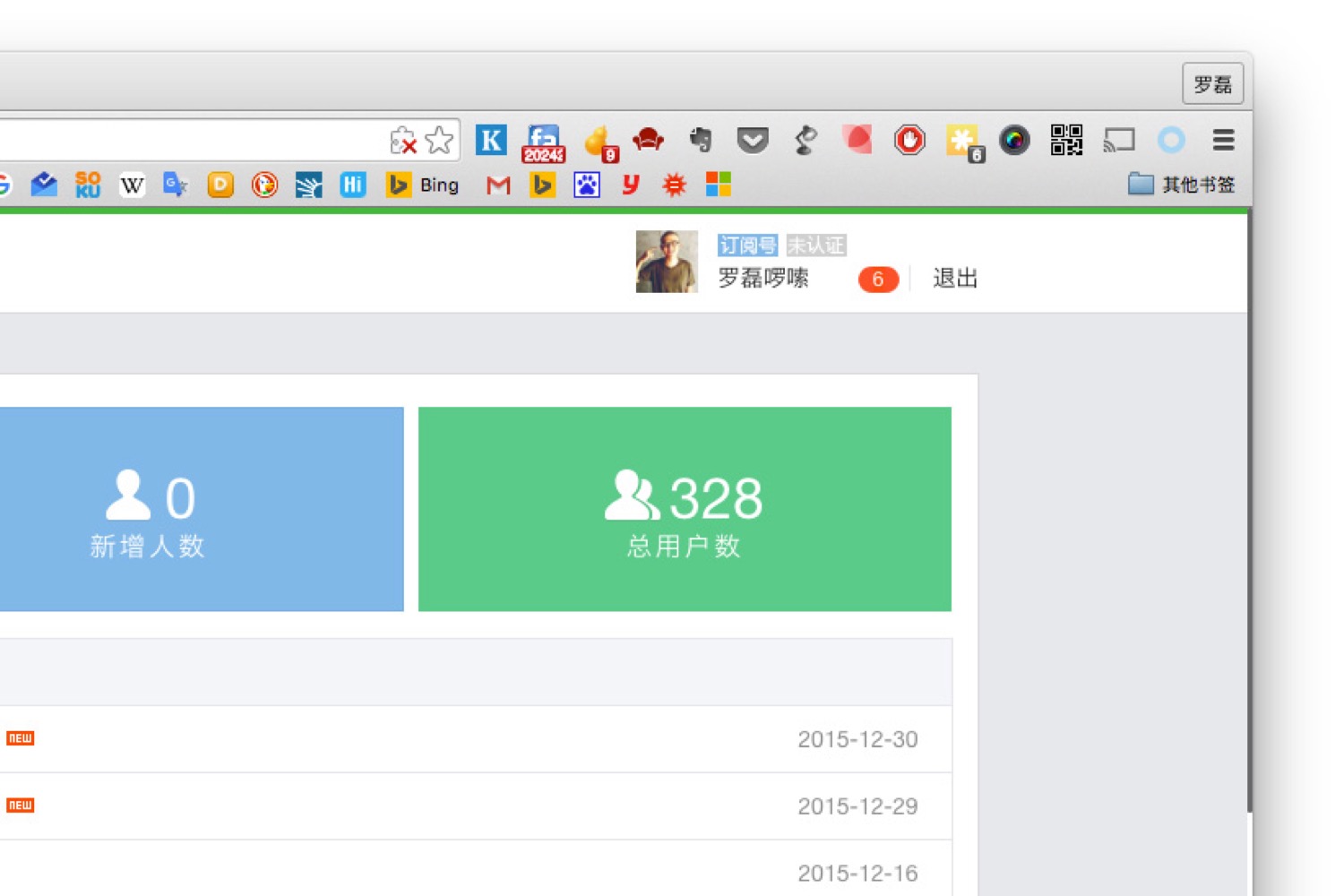 微信上目前有328人订阅了我的公众账号「罗磊啰嗦」,对于微信公众账号,由于个人不喜欢微信这种封闭的环境(有悖于互联网信息自由流通的精神),我过去这一年倒没有怎么投入精力在微信公众号上,对于涨粉、转发这些事情也不关心,都是自然增长的用户。