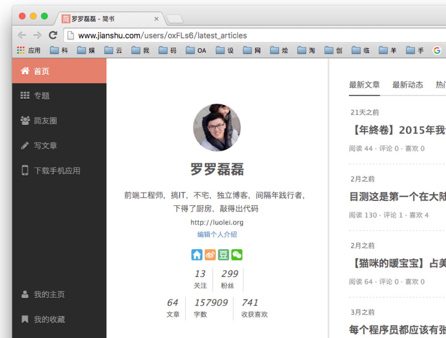 除了平台的发展,也时不时能发现坚持有写独立博客的人,尤其是坚持写独立博客的开发者,每次搜索什么东西,或者从社区或者其他渠道发现一个新的博客,总能欣喜一番。周围的朋友中,坚持写博客的朋友也有,除了朋友圈,从博客也能更深地了解到这些朋友最近的思考。