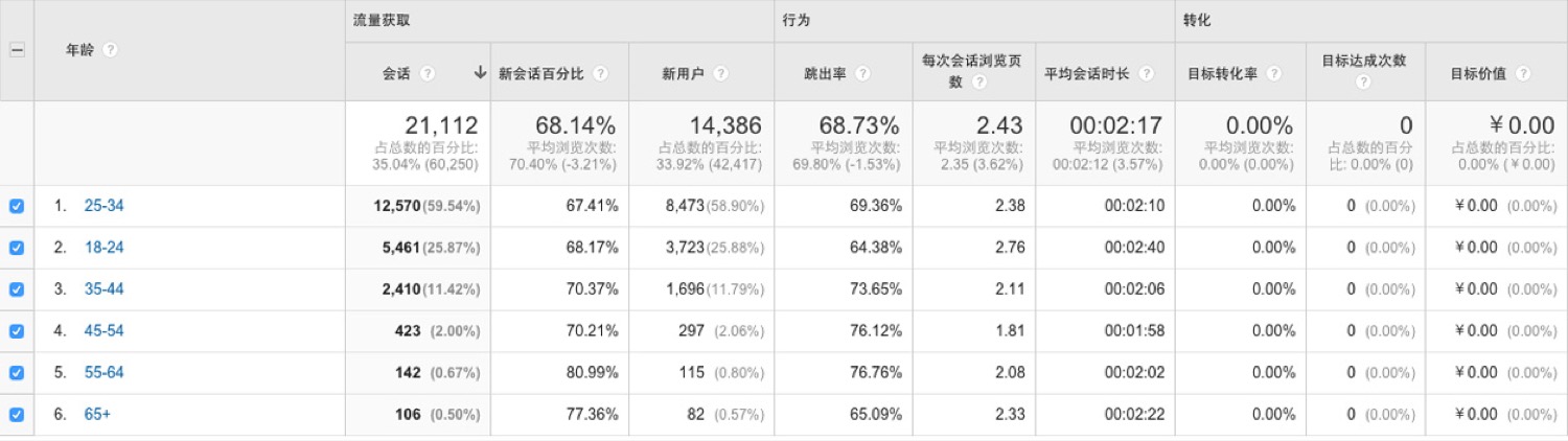 将近59.54%的用户在25-34岁之间,25.87%在18-24岁之间,嗯哼,我的博客大多是年轻人来看。