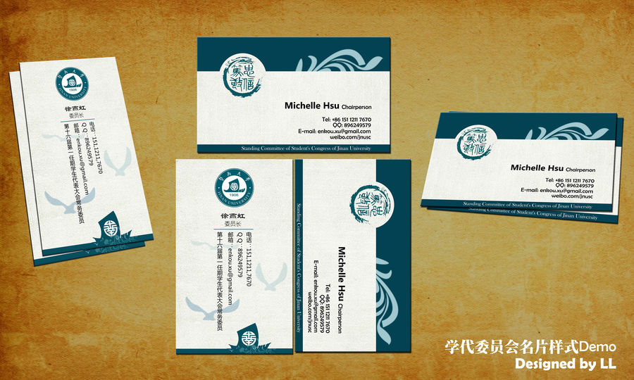 学生会主席冒力同学叫我帮忙给学代会委员会设计名片,想着好久没有碰PS了,就想试一试,用了半个下午和晚上一点时间,做出这个。