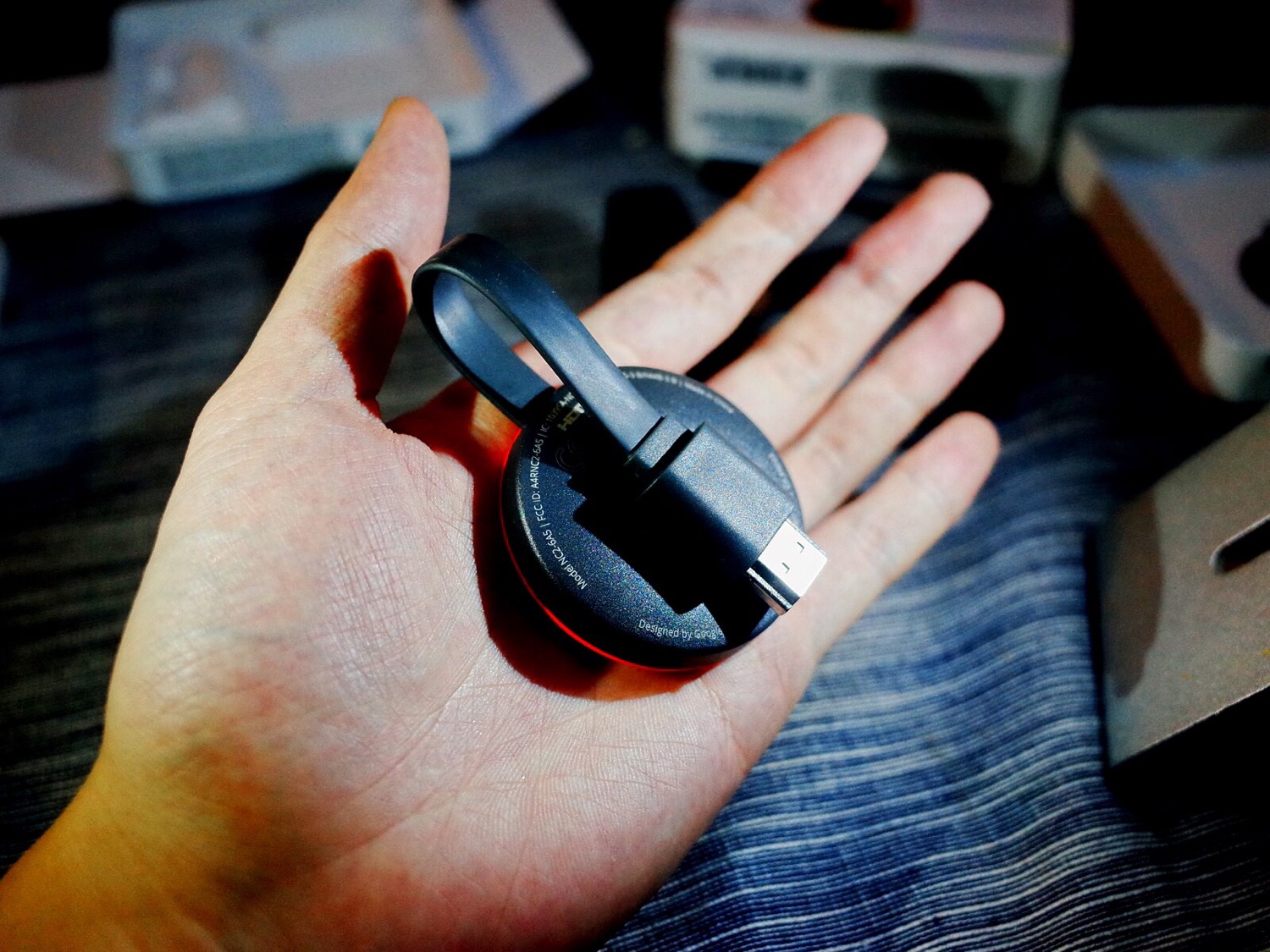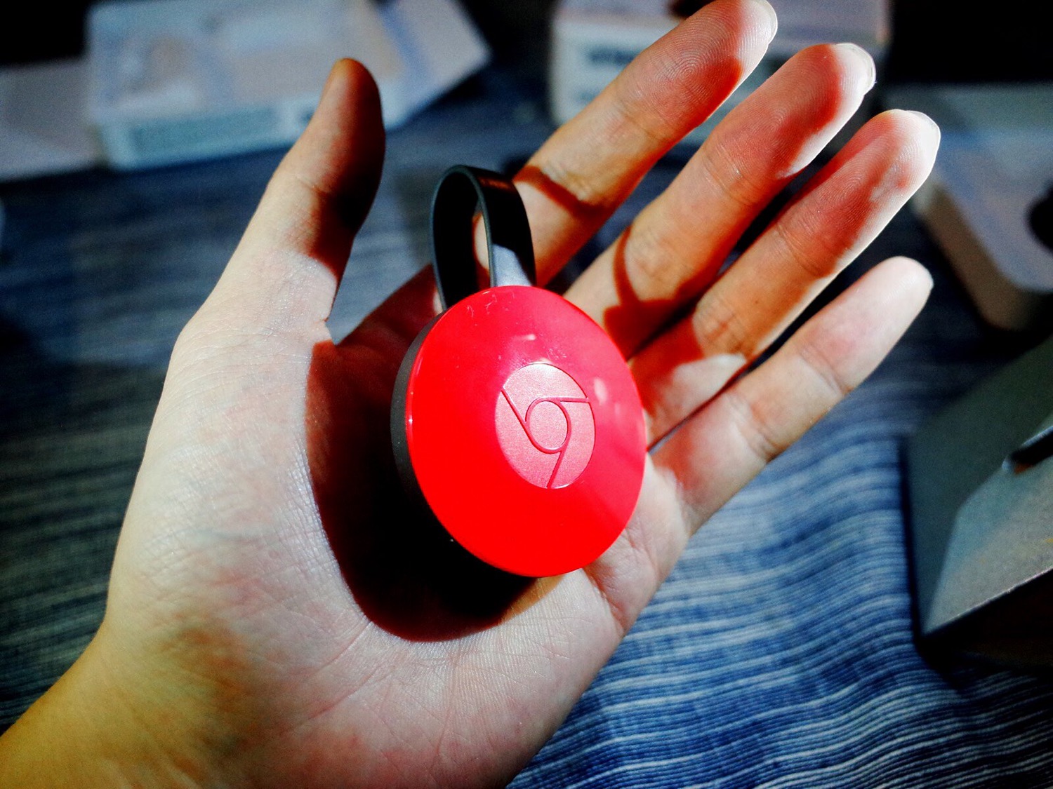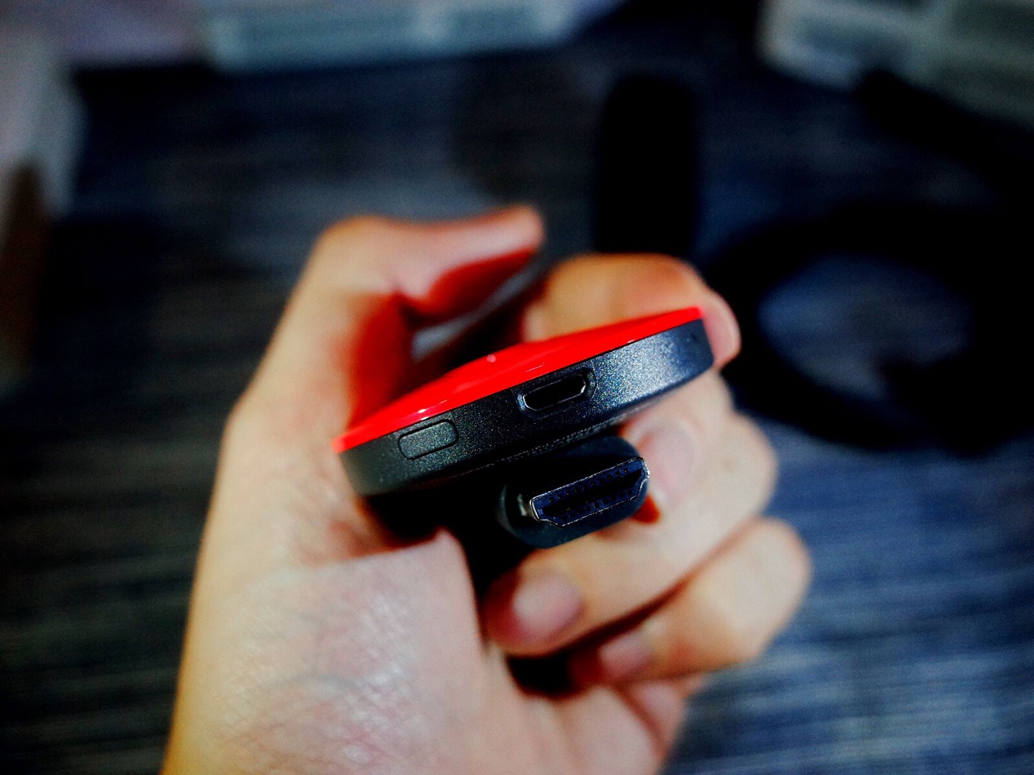 展开之后,就是Chromecast 2.0真身,这次我拆开的是红色,夜晚拍摄,家里照明不好,Chromecast上面的Logo都模糊了。