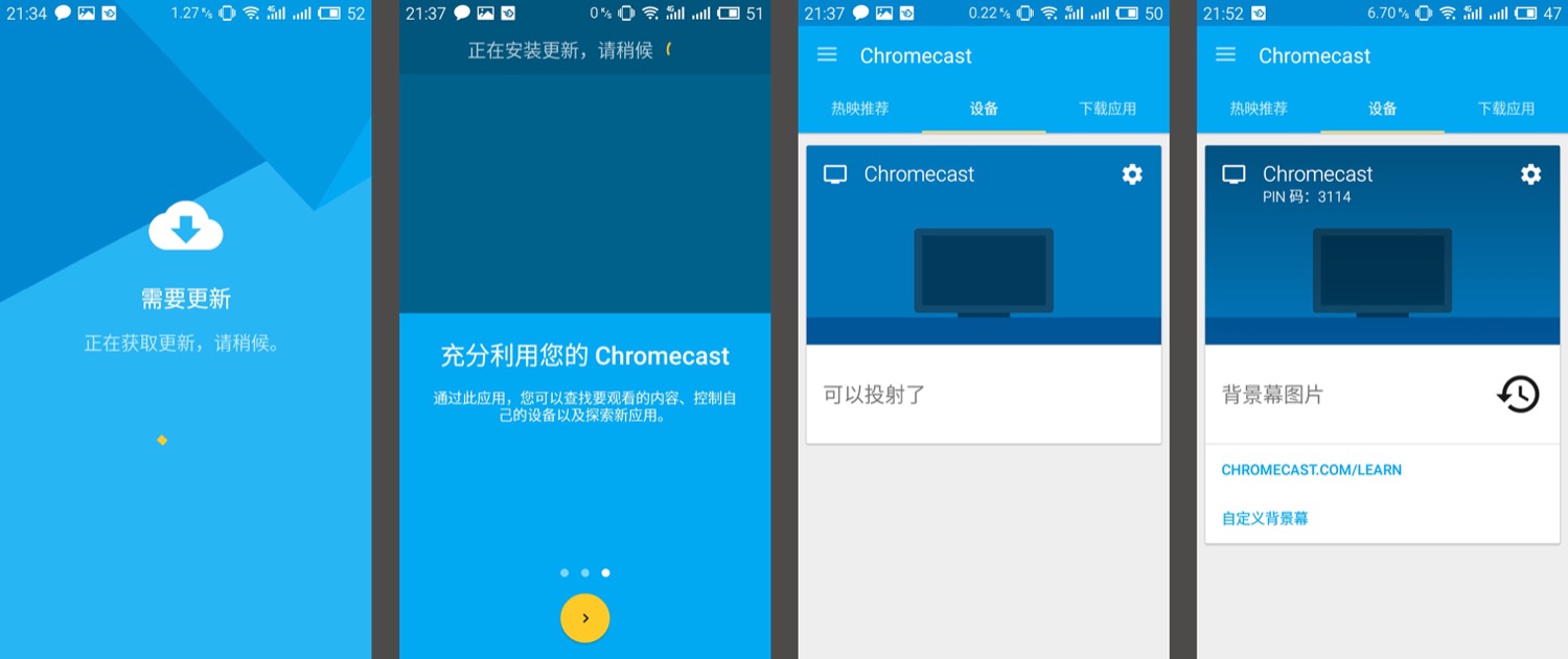 连接WIFI成功后,Chromecast一般会有一个升级,此时也是需要学习先进技术网络的,更新速度就看你的党性了,万事俱备后,接下来Chromecast会做一次重启,接下来,就正式可以使用啦。