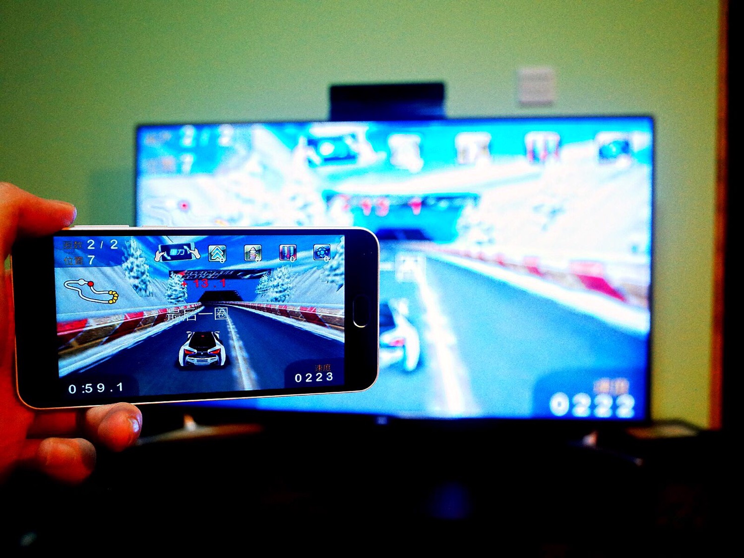 顺便玩了一下赛车,游戏画面变化快速,Chromecast的画面依旧十分流畅,基本可以做到不看手机屏幕,直接看电视就可以了。