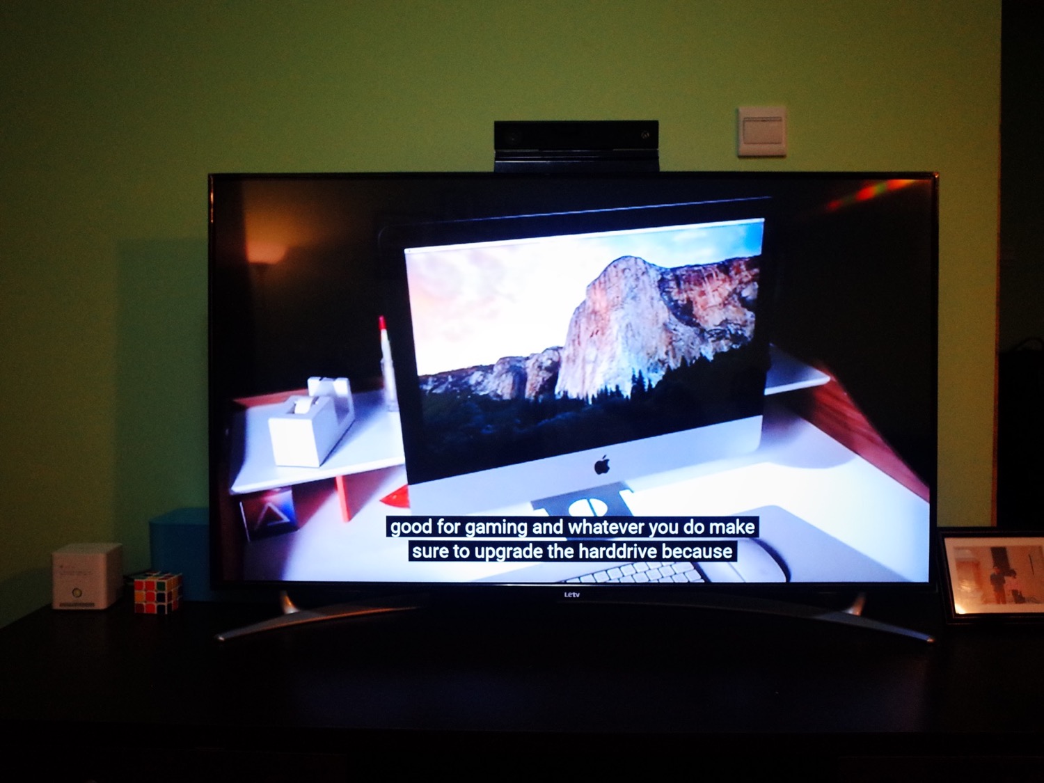 播放TheVerge的一个评测视频,选择打开字幕,电视上自动显示字幕了。