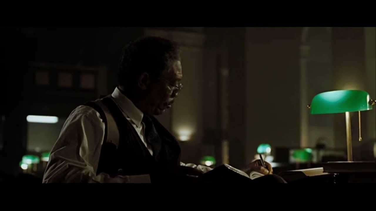 两位警探去图书馆研读但丁的《神曲》,企图从文学作品中对人间地狱的描绘中找到线索,当弗里曼(嗯哼,就是那位曼德拉)走进图书馆时,背景音乐里响起了一段古典乐,一边是动人的音乐,一边是弗里曼和布拉德皮特面对恐怖凶杀案的材料苦思冥想,强烈对比之下,让人不免对人性之复杂感慨万千。