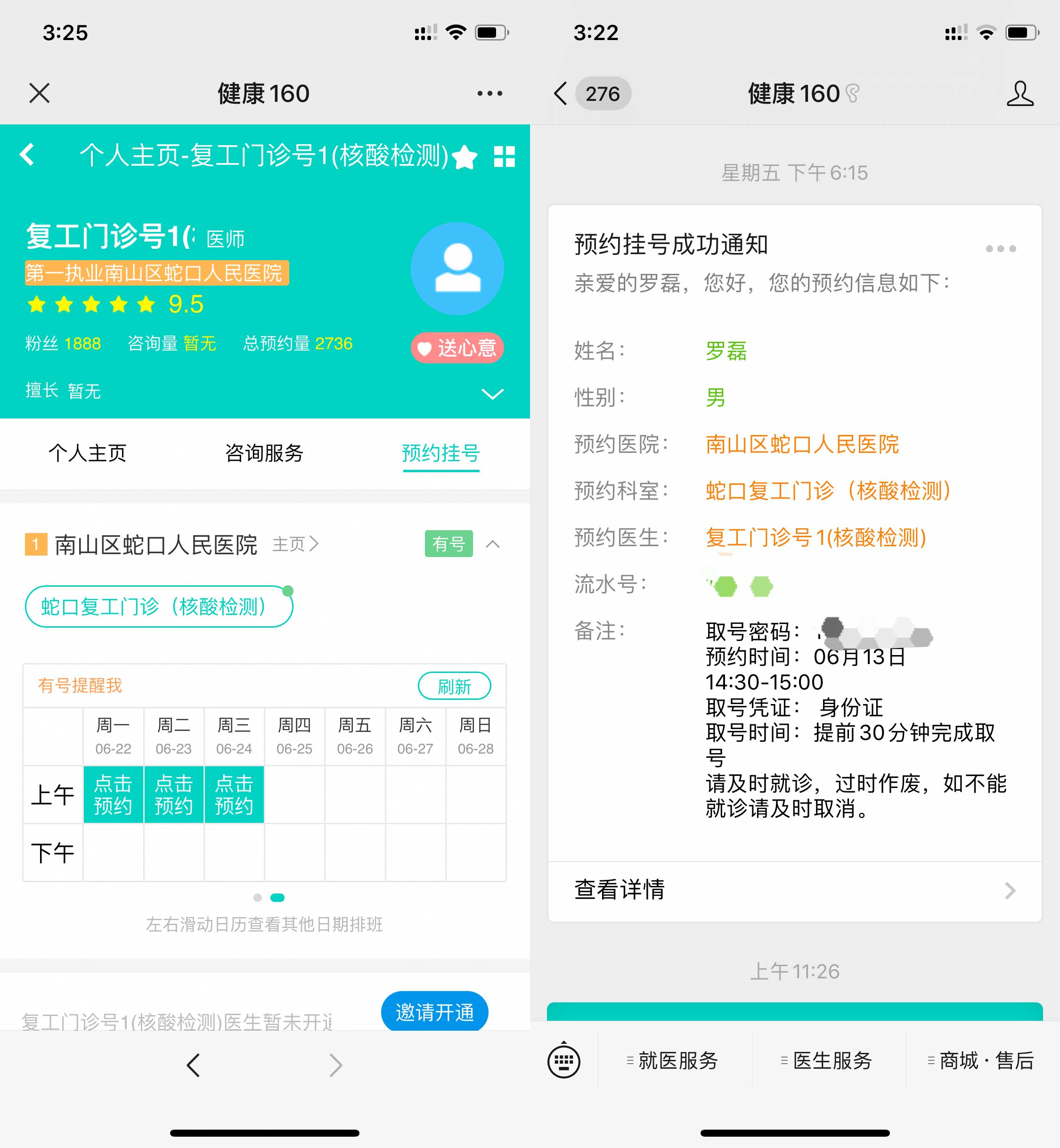 我是直接在91160挂号网预约的,也能够在微信公号、APP上面注册预约,现在深圳这边大多医疗机构,都支持互联网预约,还是挺方便的。