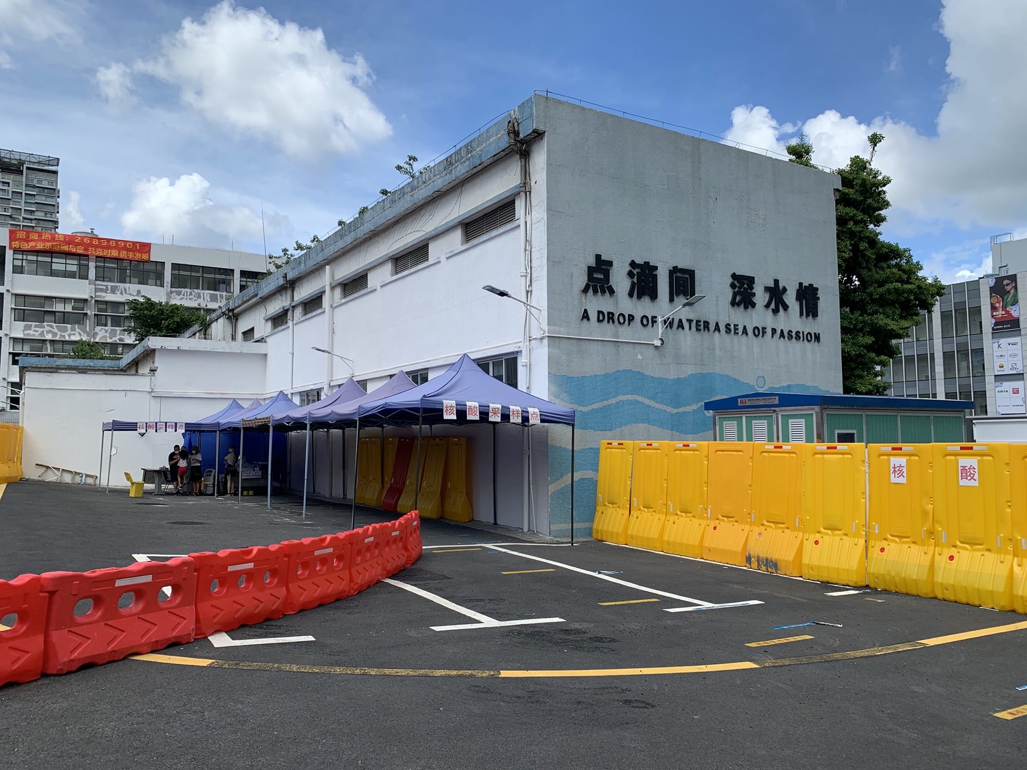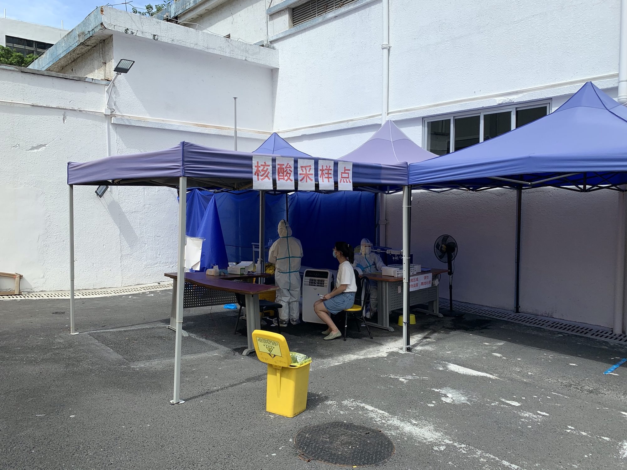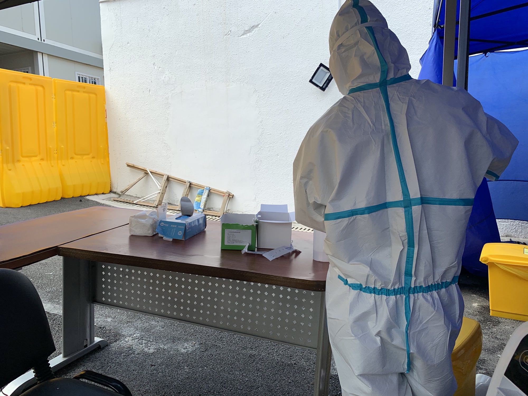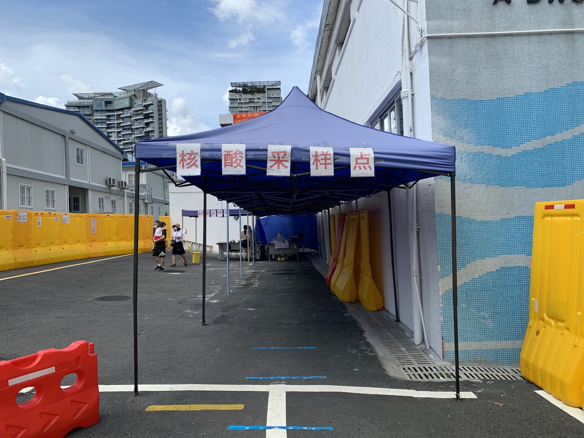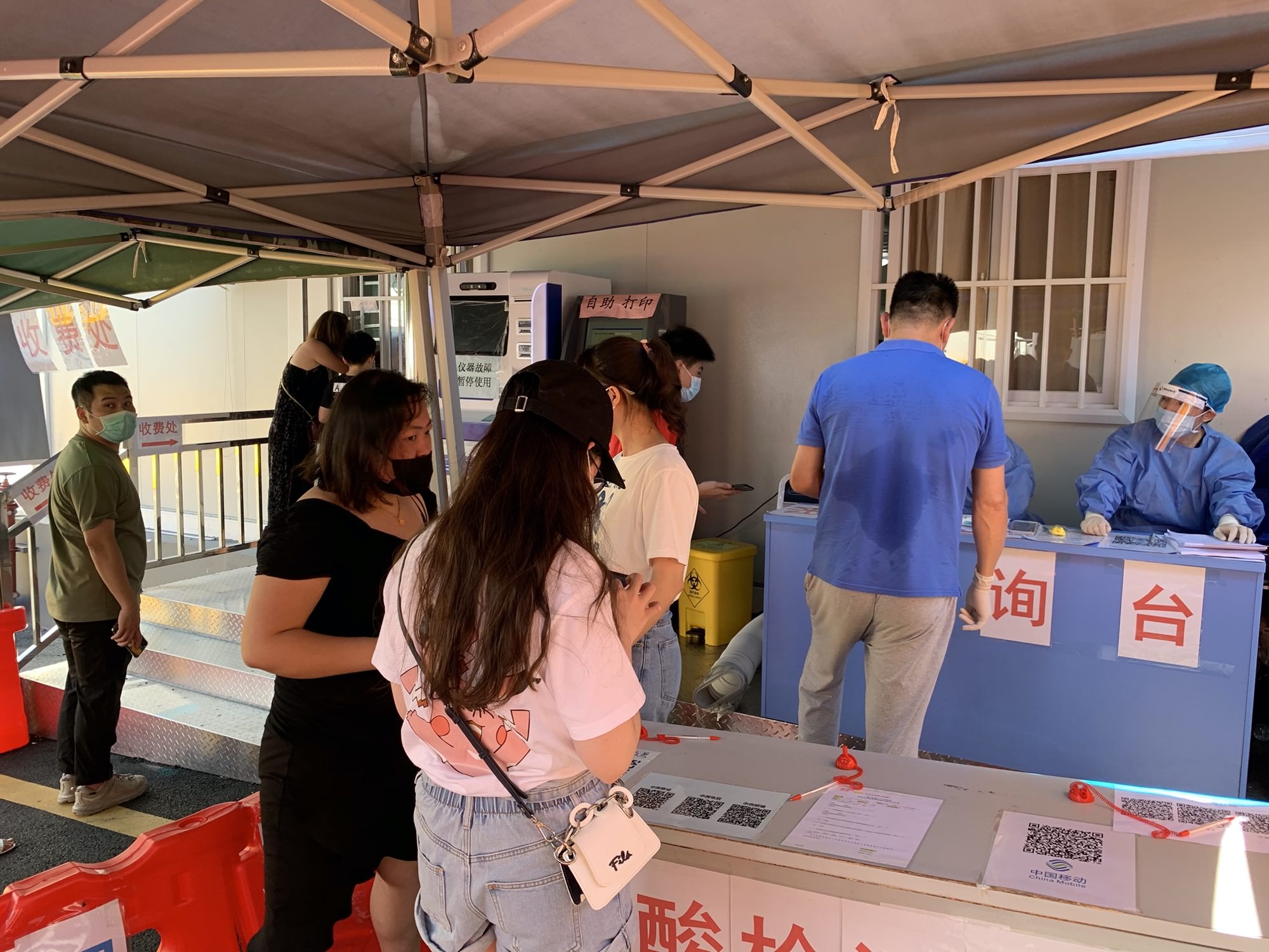 这里本来是一个工地,由于疫情改成了核酸检测场所,这边的楼都是板楼,今天是周六,来的人不是很多。