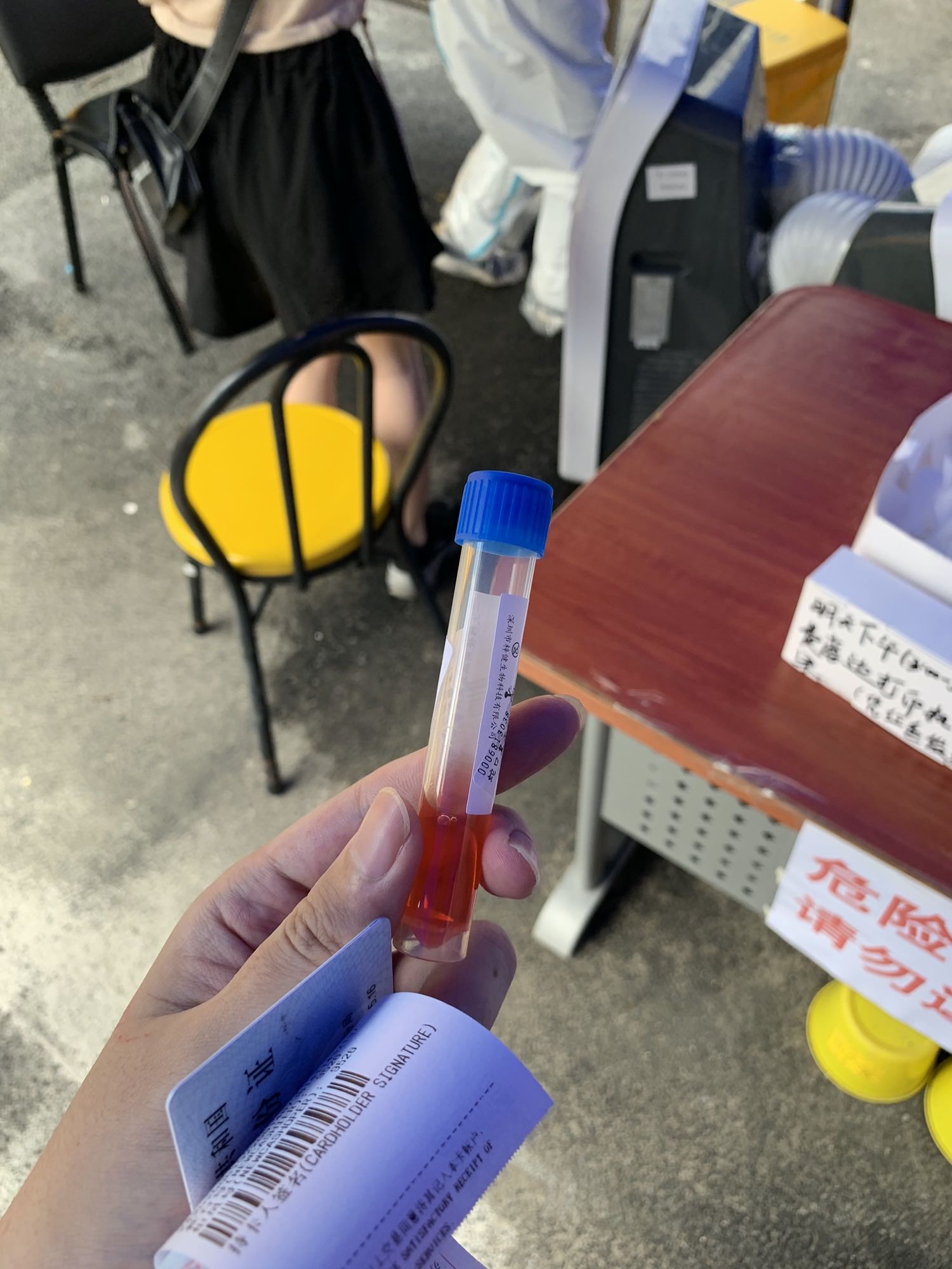 检测过程十分简单,工作人员拿一个口咽拭子,往我喉咙里通了两下,然后把上面的小瓶子交给他,就完事了,过程大概10秒。