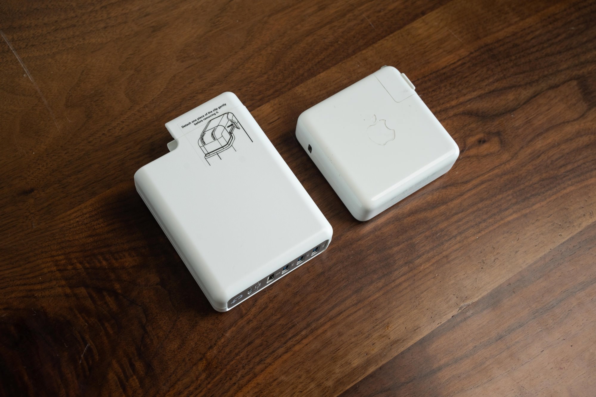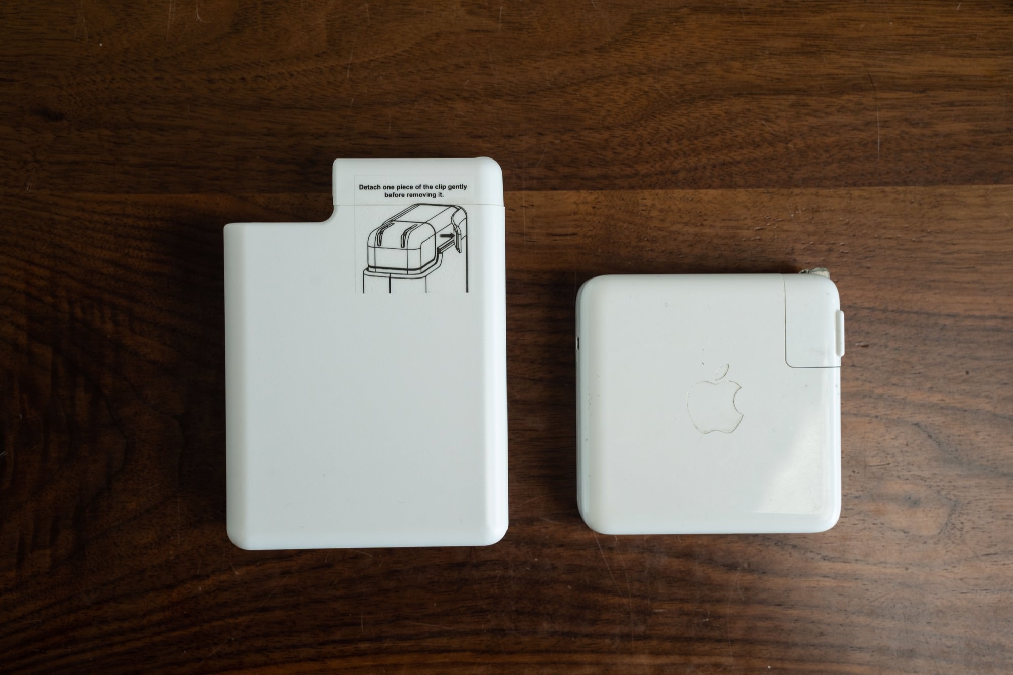 DockÇase与MBP 87W原装电源对比,高出了一个头。