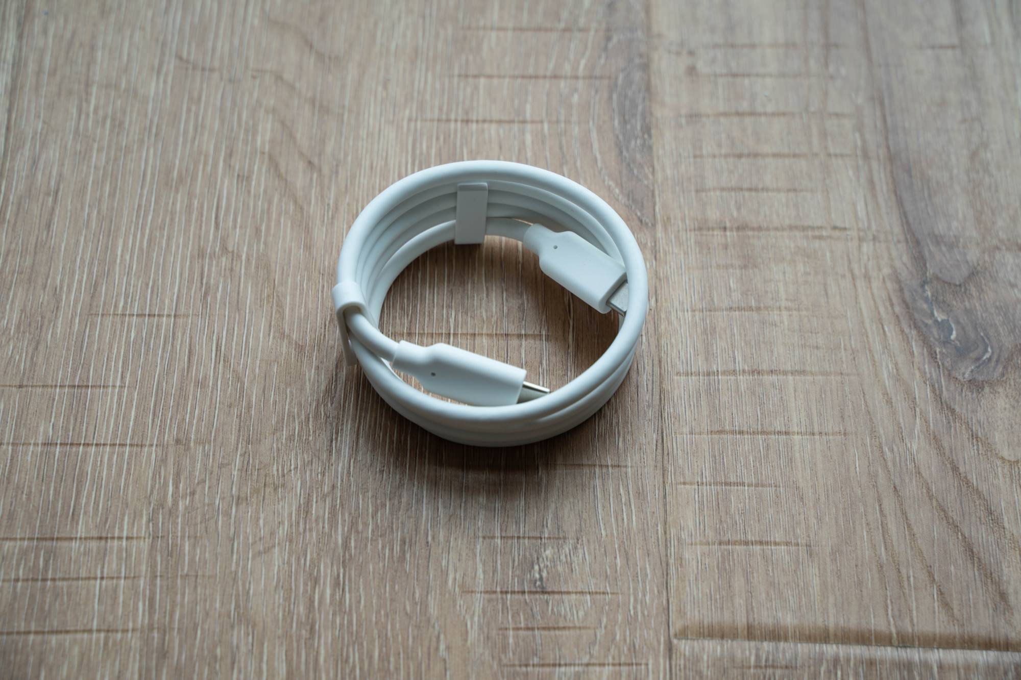 DockCase 内有附送一个 TypeC 线,能够传输数据的那种,电源线略粗,比MBP自带的电源线要硬不少。