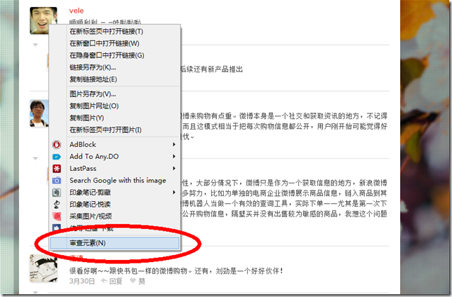 以高级浏览器Chrome为例(Firefox可以用firebug),使用「审查元素」来定位元素位置