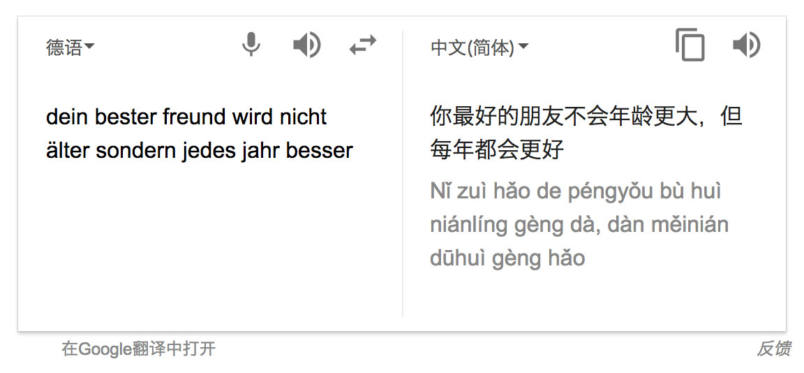 翻译过来正常的中文大概就是「年年都有今日,岁岁都有今朝,恭喜你,恭喜你」,好吧,上面是我瞎翻译的,正经的谷歌翻译如下。