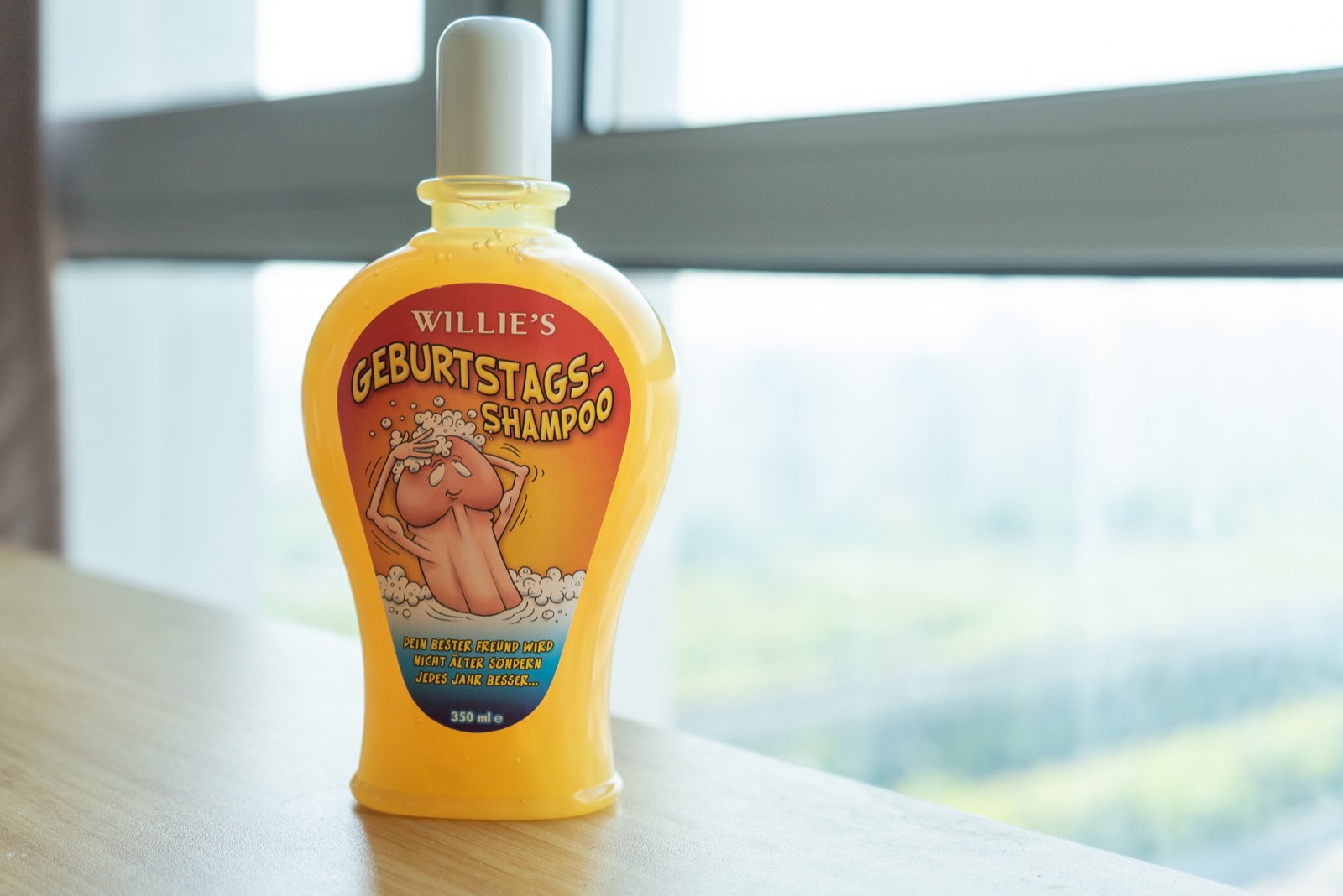 WILLIE'S 是荷兰 paperdreams 旗下的一个品牌,GEBURTSTAGS 是德语,意思是「生日」,自如其名,这个洗洗液就叫「生日清洗露」。封面的贴纸有一种我说不上感觉的喜感。下方正儿八经地写了一段德语祝福: