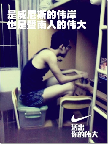 这几天Nike的「活出你的伟大」营销做得算是风生水起。我也来了灵感,跟风写了几段文案,PS了几张跟我们暨南大学相关的文案,权当娱乐吧。