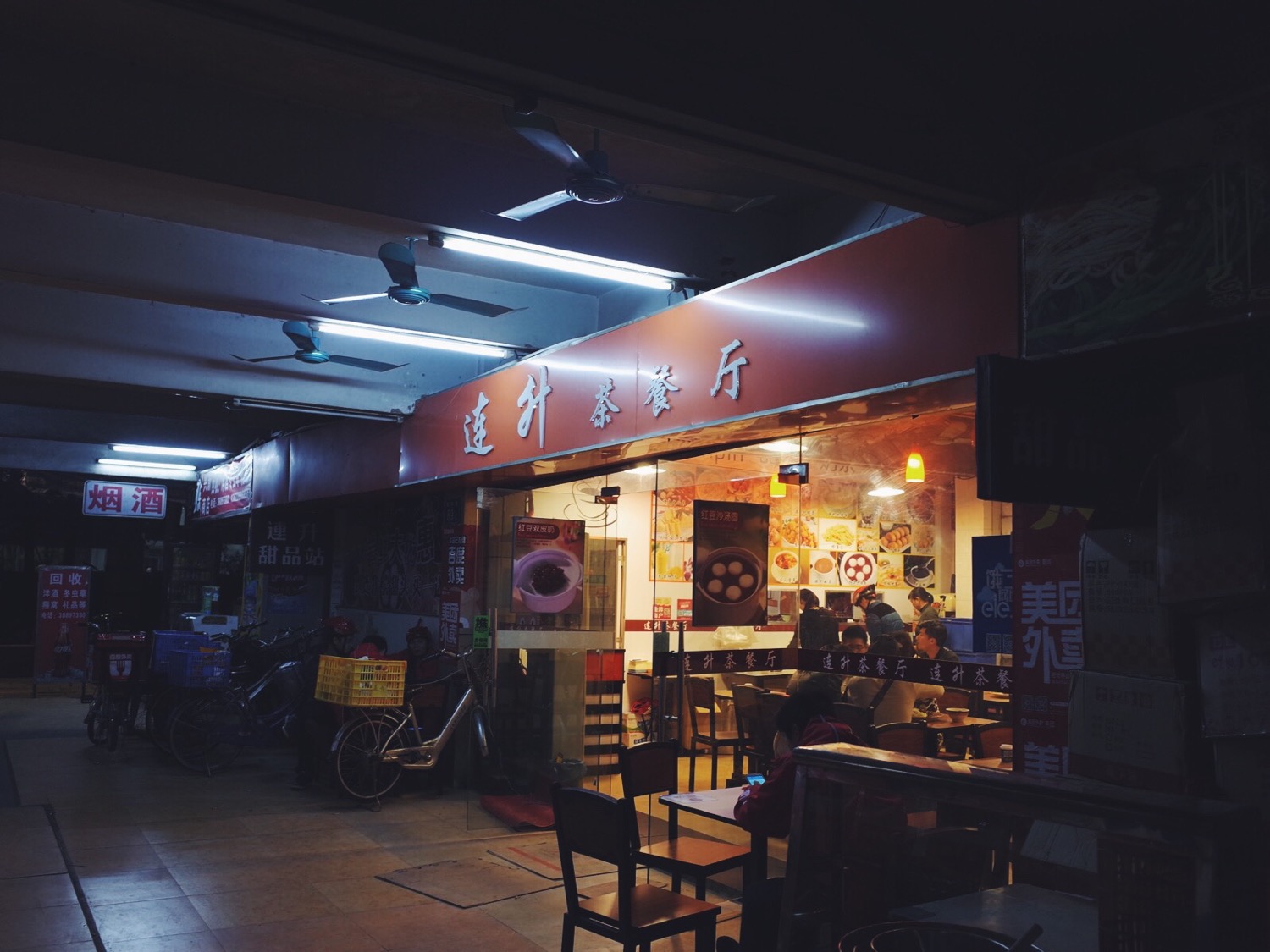 常来这家叫连升的茶餐厅,叫上一份滑蛋牛肉配上冻奶茶,或者一份剁椒排骨和柠蜜,十五六块的价钱,在学生时代也算是挺贵的一餐了,进去餐厅才发现后半部门已经被一堵墙隔开,餐厅门口坐着饿了么和百度外卖的快递员,这O2O进校园,给周边餐厅的格局,也算是带来了变化。