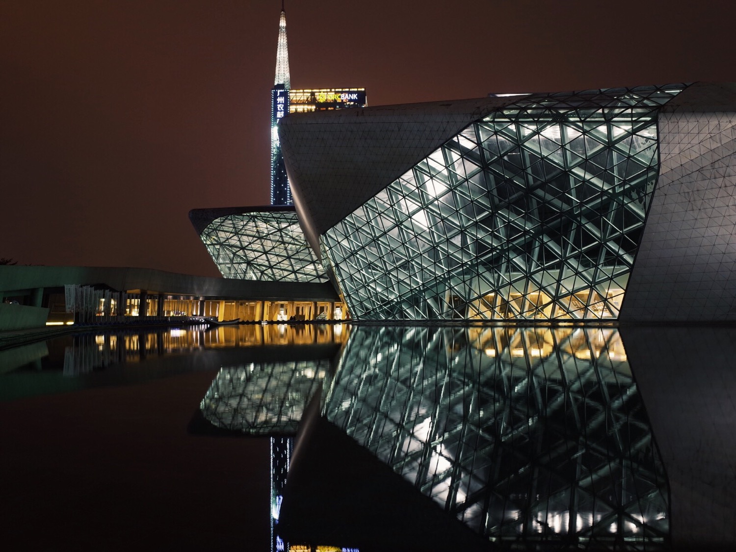 广州音乐厅门前有一片水塘,镜像印着音乐厅,常见摄影爱好者在这里拍照。
