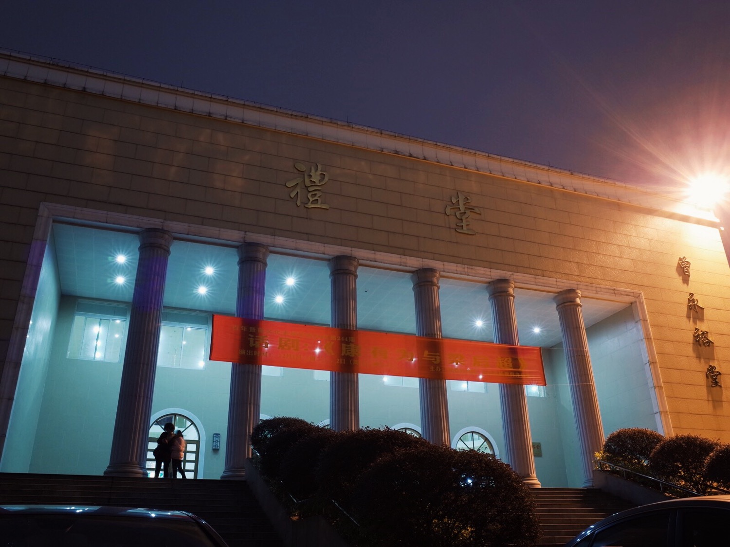学校的礼堂,自己大学几年却没进去过几次,在这里听过陆川的讲座,看过学校里的演出。学校好的话,这些名人、资源也都会向这里倾斜,大学期间,余秋雨、林夕、白岩松一众名人都来过我们学校,每次他们的讲座也算是爆场。当然,跟北京的名校资源一比,就小巫见大巫了。