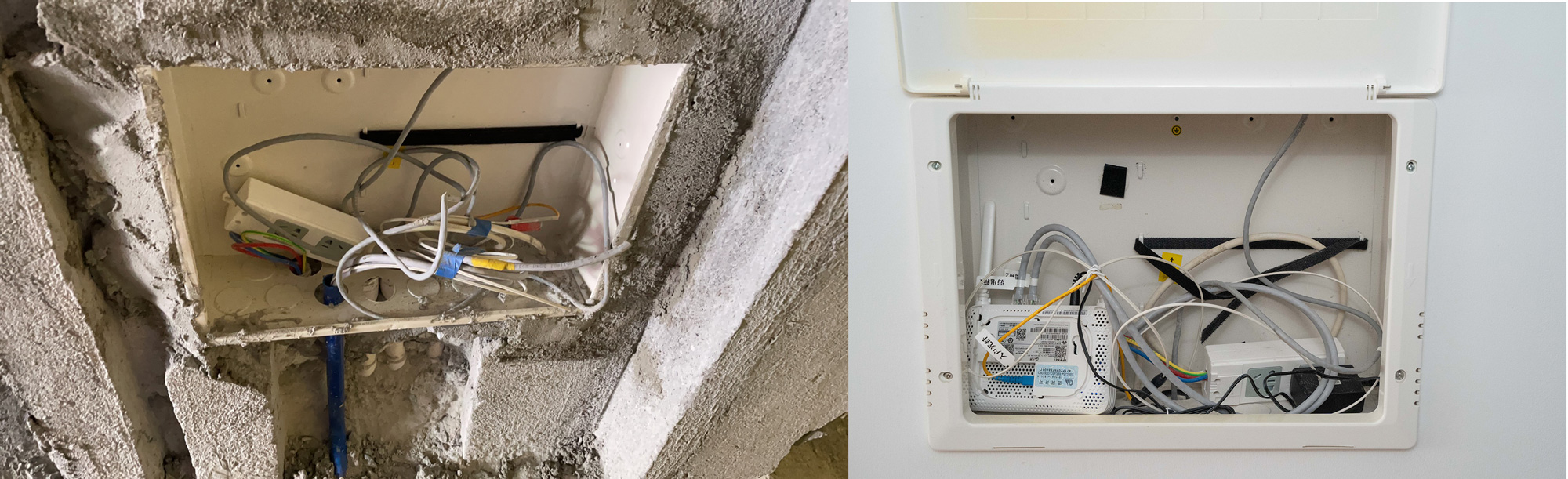- 弱电箱的位置往往是入户玄关附近,附近墙体多,WiFi 信号容易受阻。