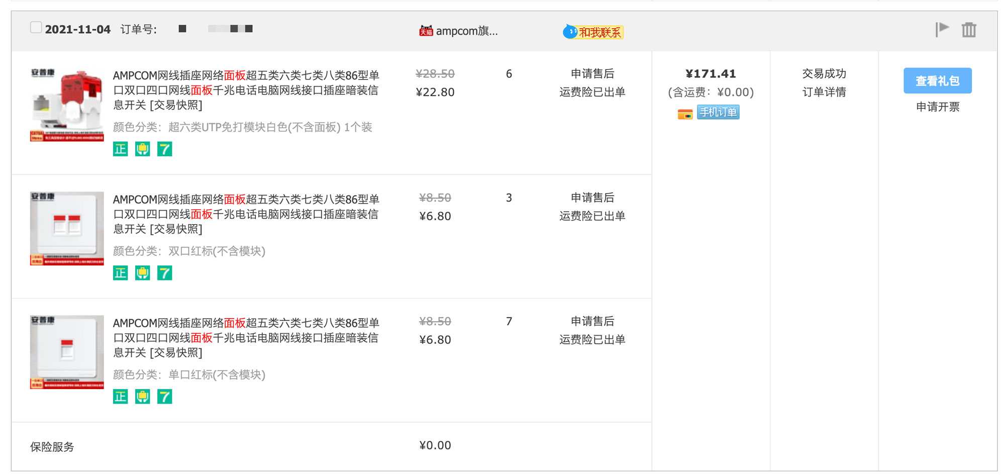 如果不在乎颜值,也可以自己购买组装的。我也额外购买了 AMPCOM 的网线面板,价格就比施耐德这种大牌便宜多了,放到吊顶,柜子里都可以,反正平时也看不到。