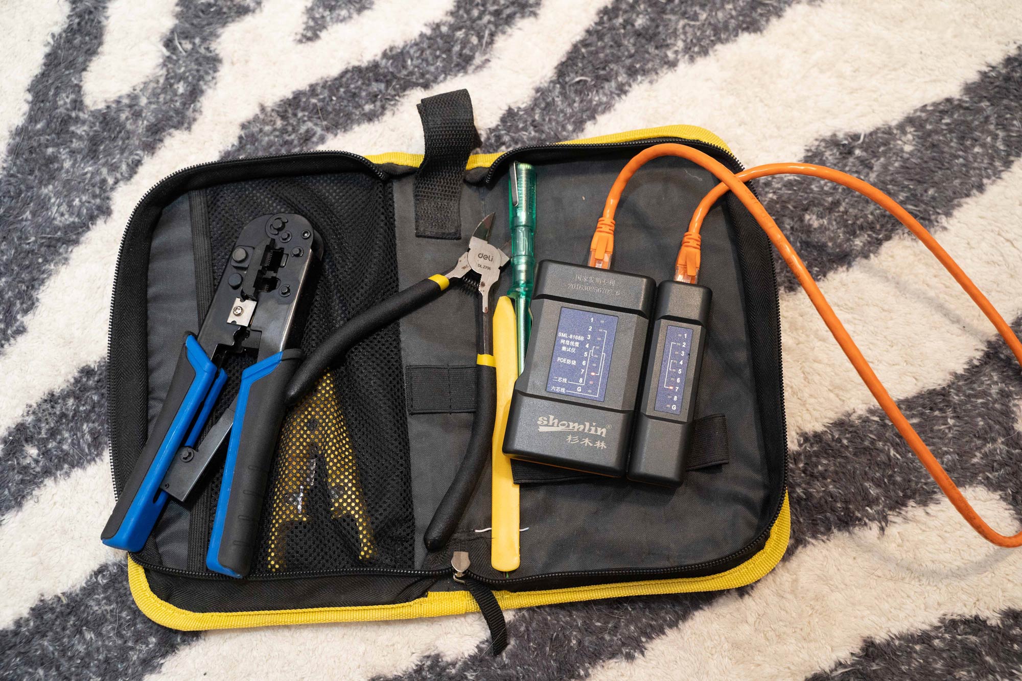在这里推荐也可以备一套压网线和检测网线的工具。后续自己检查家庭网络时还是用得上的。