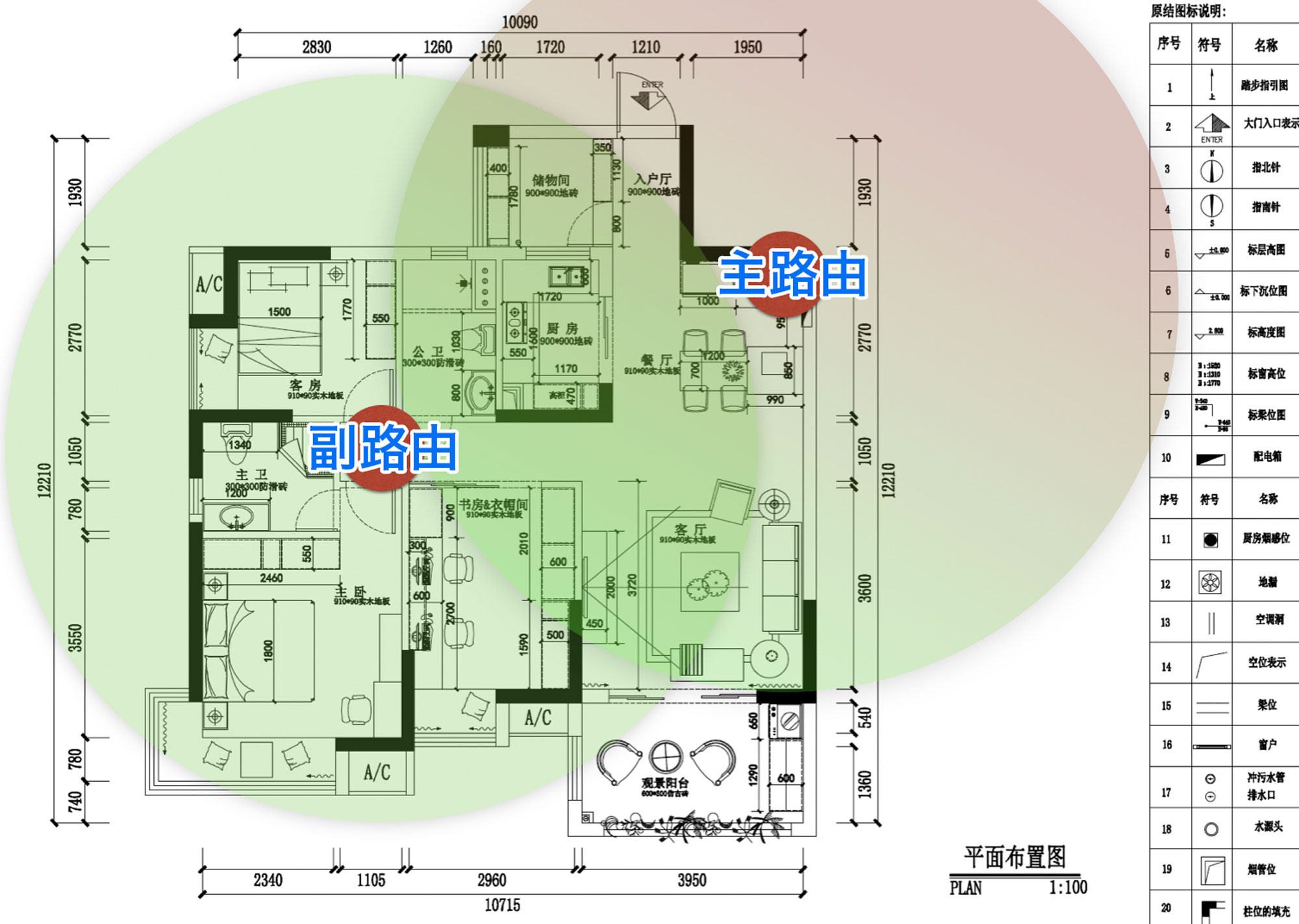 最终经过分析,决定采用主副两个路由来覆盖全屋WiFi,餐边柜里的路由器来覆盖客餐厅的信号,副路由的路由器来覆盖主卧、次卧、卫生间等。