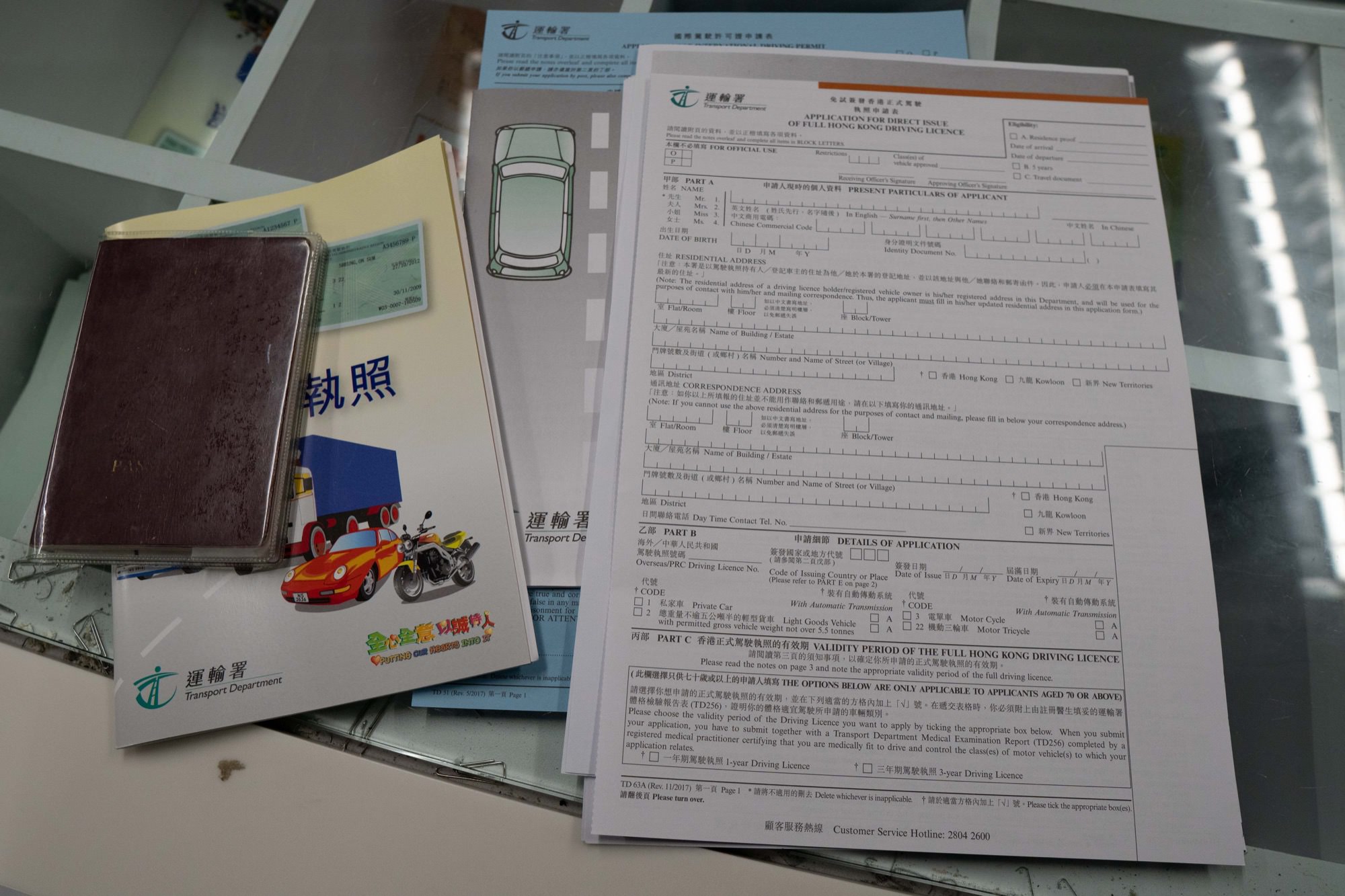 - 填写「TD 63A 免試簽發香港正式駕駛執照申請表」