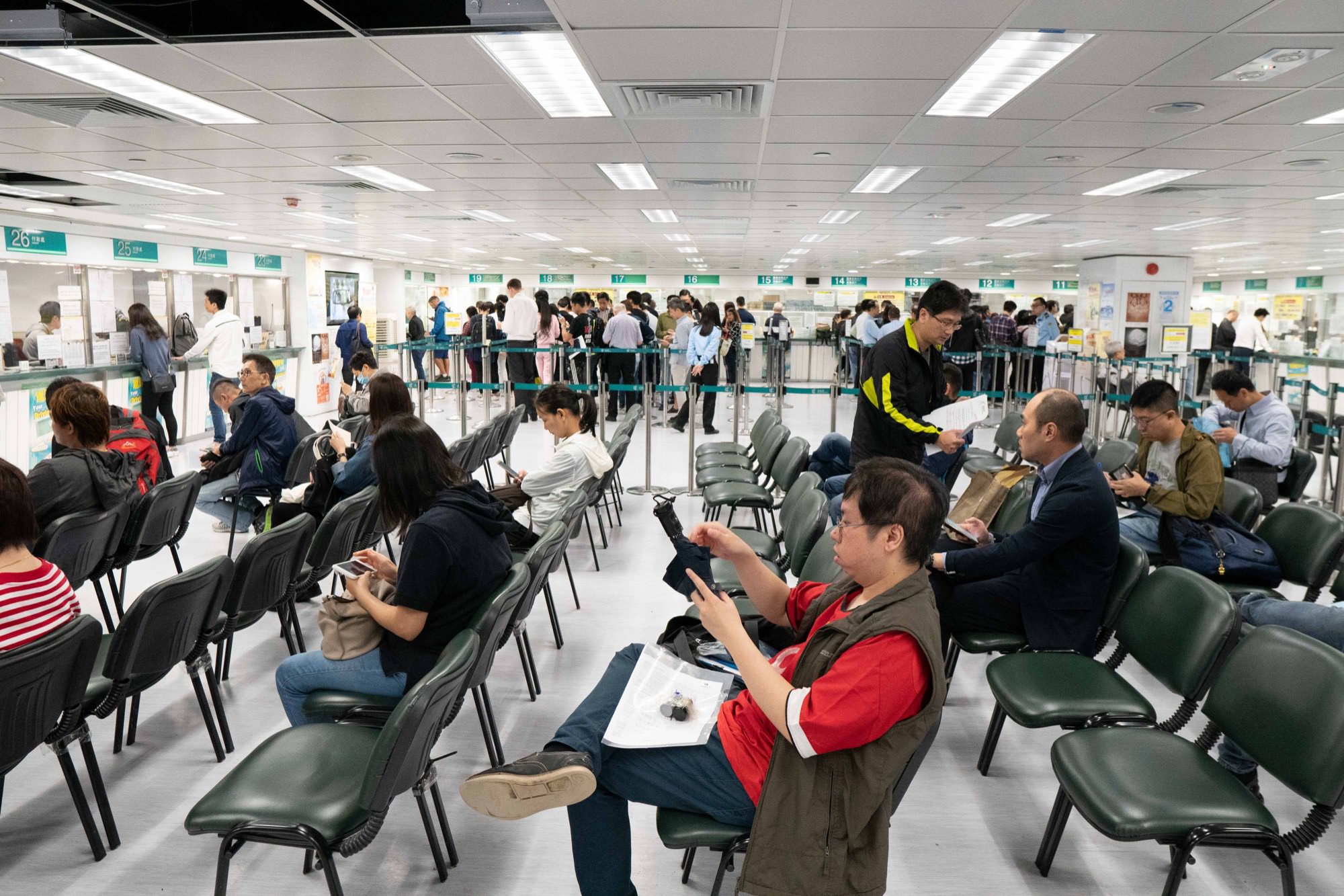 把护照、地址证明交给中介后,中介就去排队了,我等了一会。