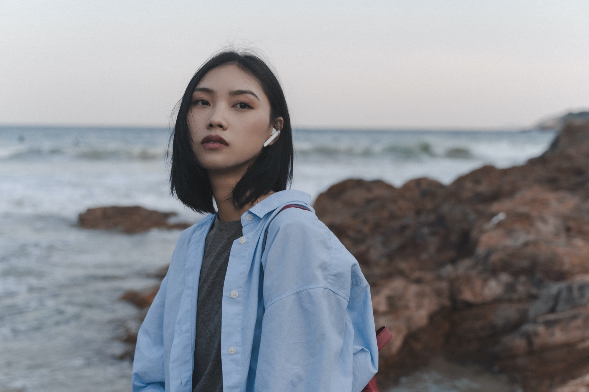 今天海边风还挺大,海风吹乱头发,在这里FreeBuds倒有一个特色的设计,由于使用了专门的降风噪导管设计,可以有效抑制风噪,不管是被风吹,还是轻度运动,都能保证耳机的声音清晰。