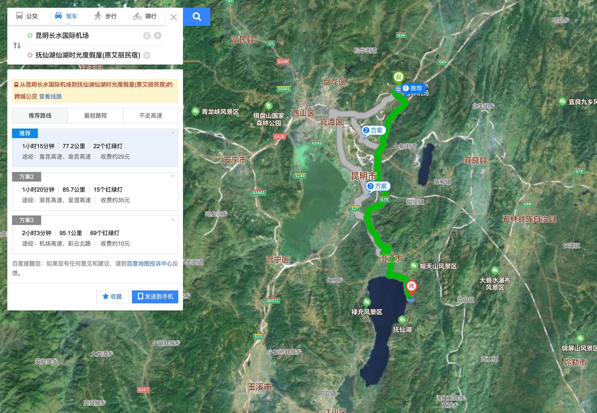 机场取了车后,从长水国际机场到抚仙湖80公里,高速直达,一路车很少,很好开,务必准备现金交过路费。