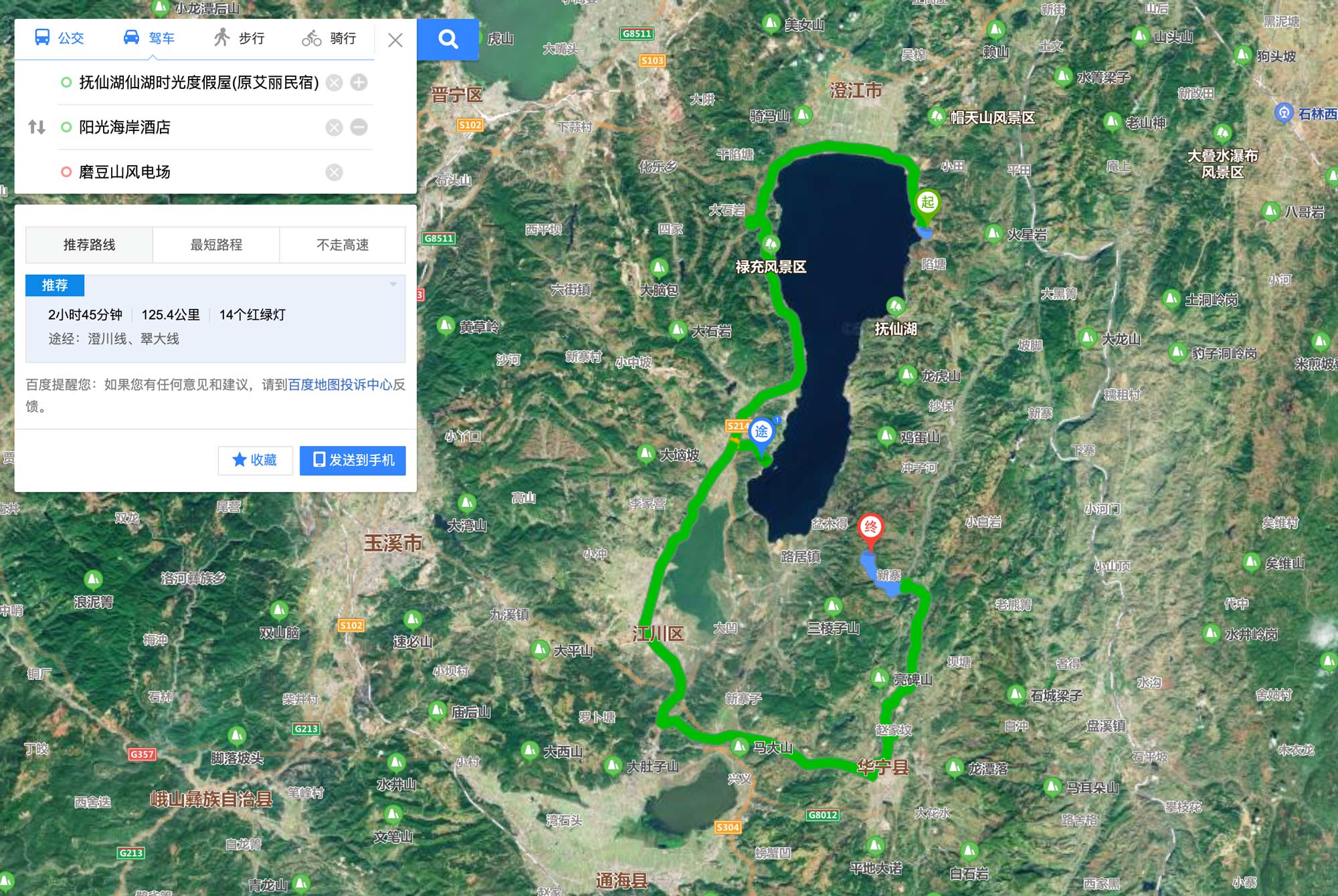我是在神州租车上租的车,由于订车时间比较晚,加上保险、两天时间租车花了500多,如果提前订的话,大概400就能搞定。神州租车在长水国际机场内就有网点,直接在机场停车楼取车还车,很方便。抚仙湖环湖都有公路,湖边的旅游设备也比较完善,自驾环湖是特别方便的选择。