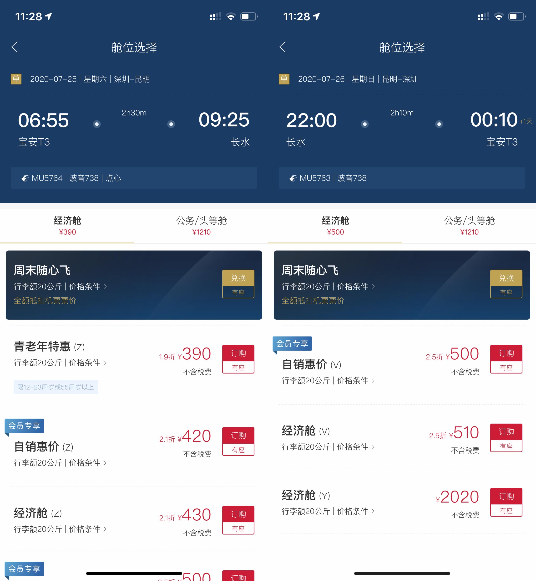 疫情这大半年以来,好久都没有出门了,憋得慌。东航在深圳的航班不多,但是也有几条路线时间还不错。上个周末(6月27、28日)是「周末随心飞」活动开始后的第一个周末。我和老婆,利用这个机会,安排了一次「深圳 <> 昆明」的行程。