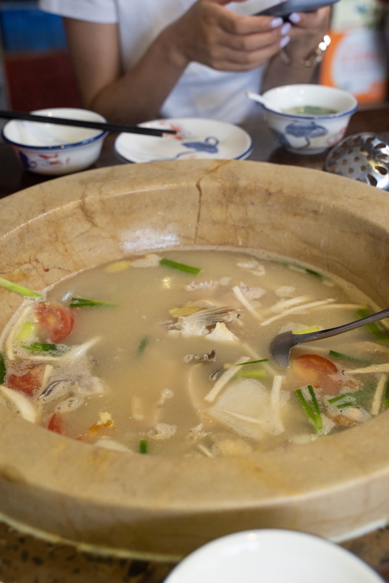 除了鱼汤,提供的佐料也很丰富,酸辣都有,搭配鱼汤自己调,石锅鱼是一道能够让广东人和四川人一起吃的特色菜,强烈推荐。