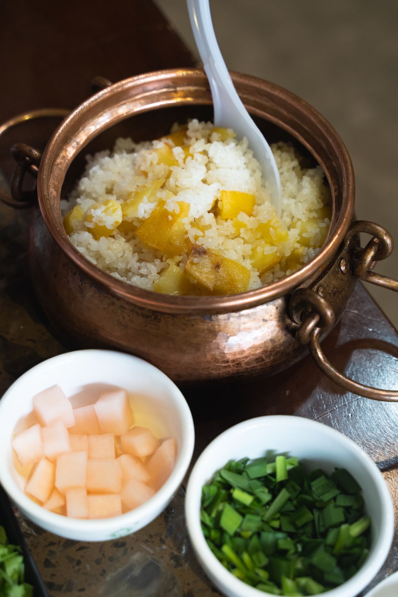 铜锅洋芋饭也属于当地特色,价格不贵,吃起来糯糯的,带有一丝微甜。这一餐,我们石锅鱼、铜锅洋芋饭、山药+豆腐,总共才160,山药和豆腐属于后面加的料,都吃不完,如果两个人来吃的话,就点石锅鱼和铜锅洋芋饭就可以了,人均60可以搞定,真便宜。吃完饭后,老板娘还直接返了我5块钱的停车费(我停到了旁边街路边)。