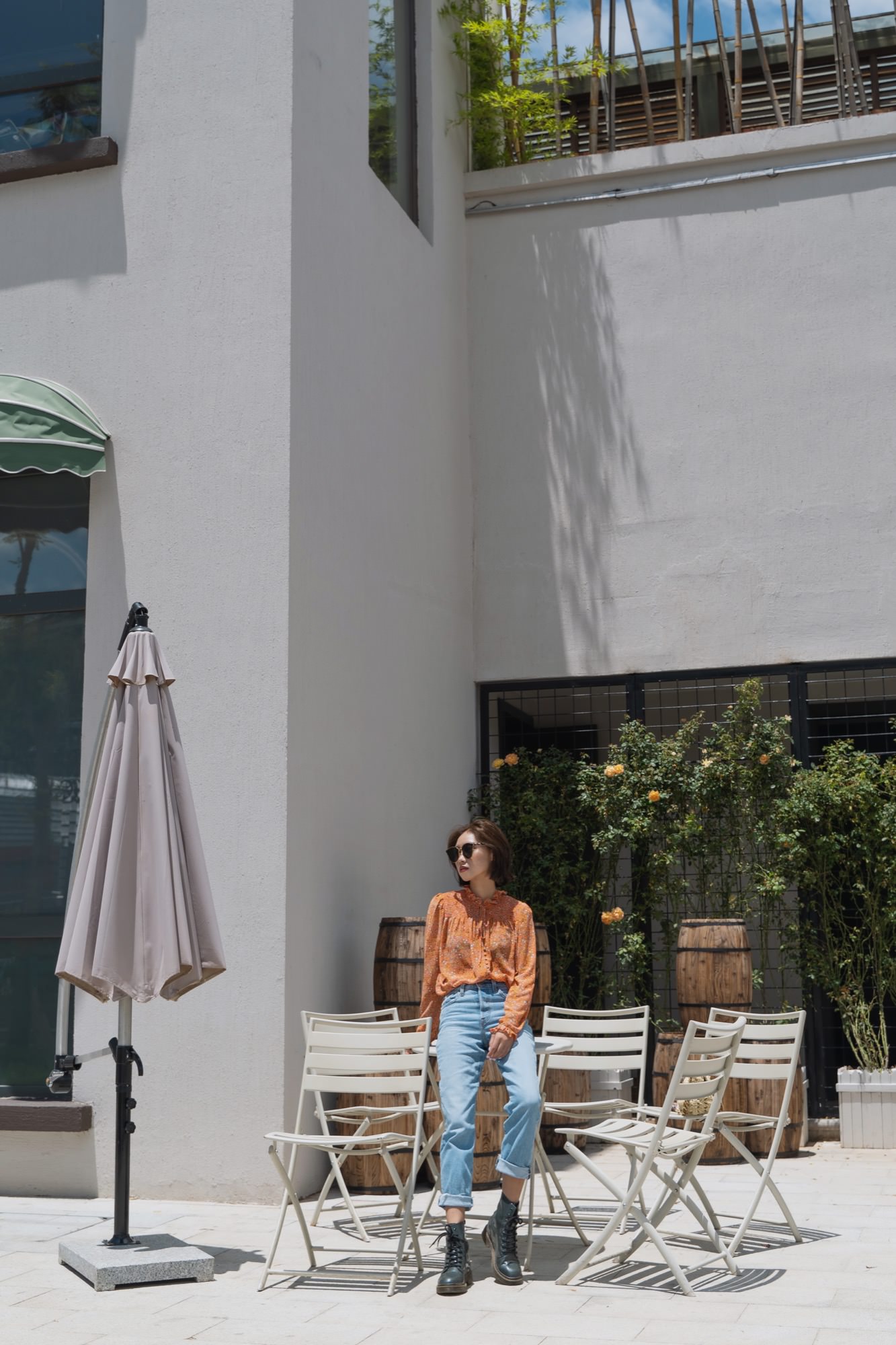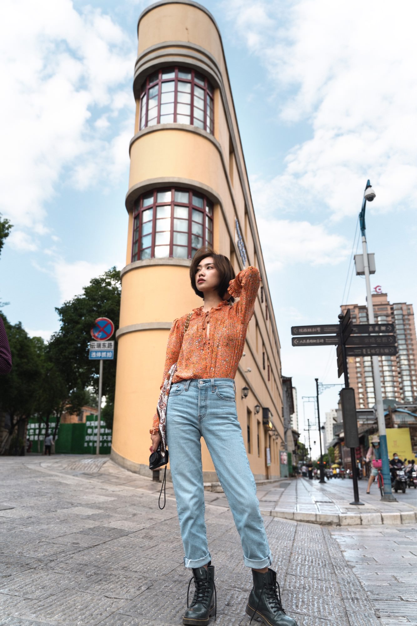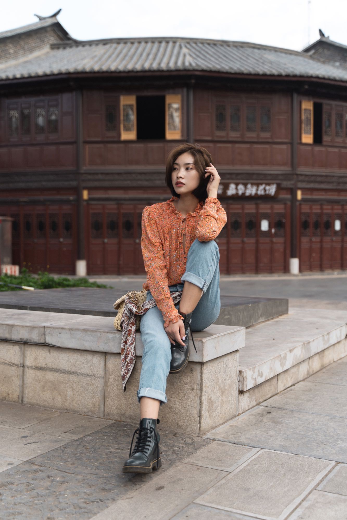 云南海拔高,阳光强烈,必备墨镜,在小镇里跟老婆走走拍拍。