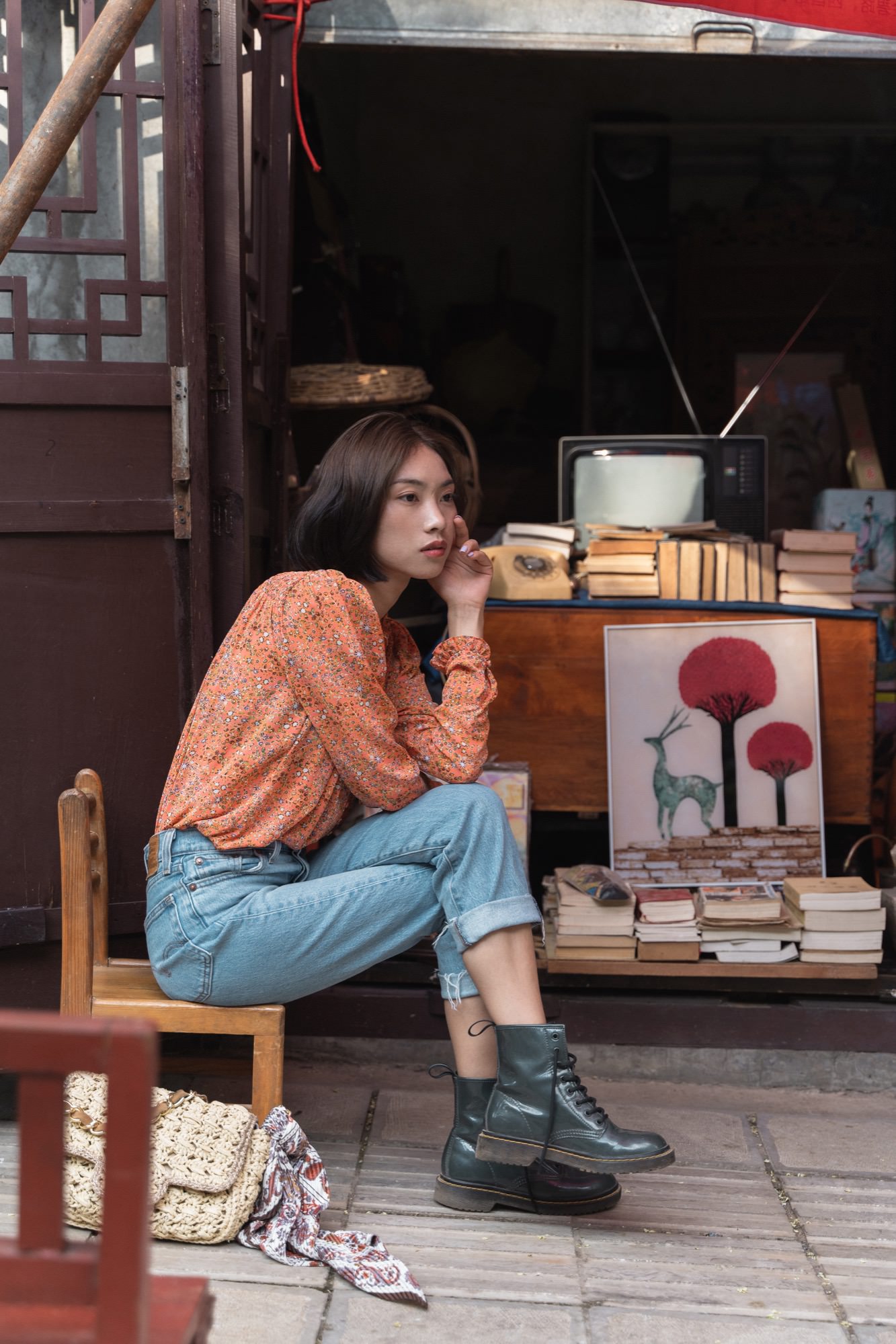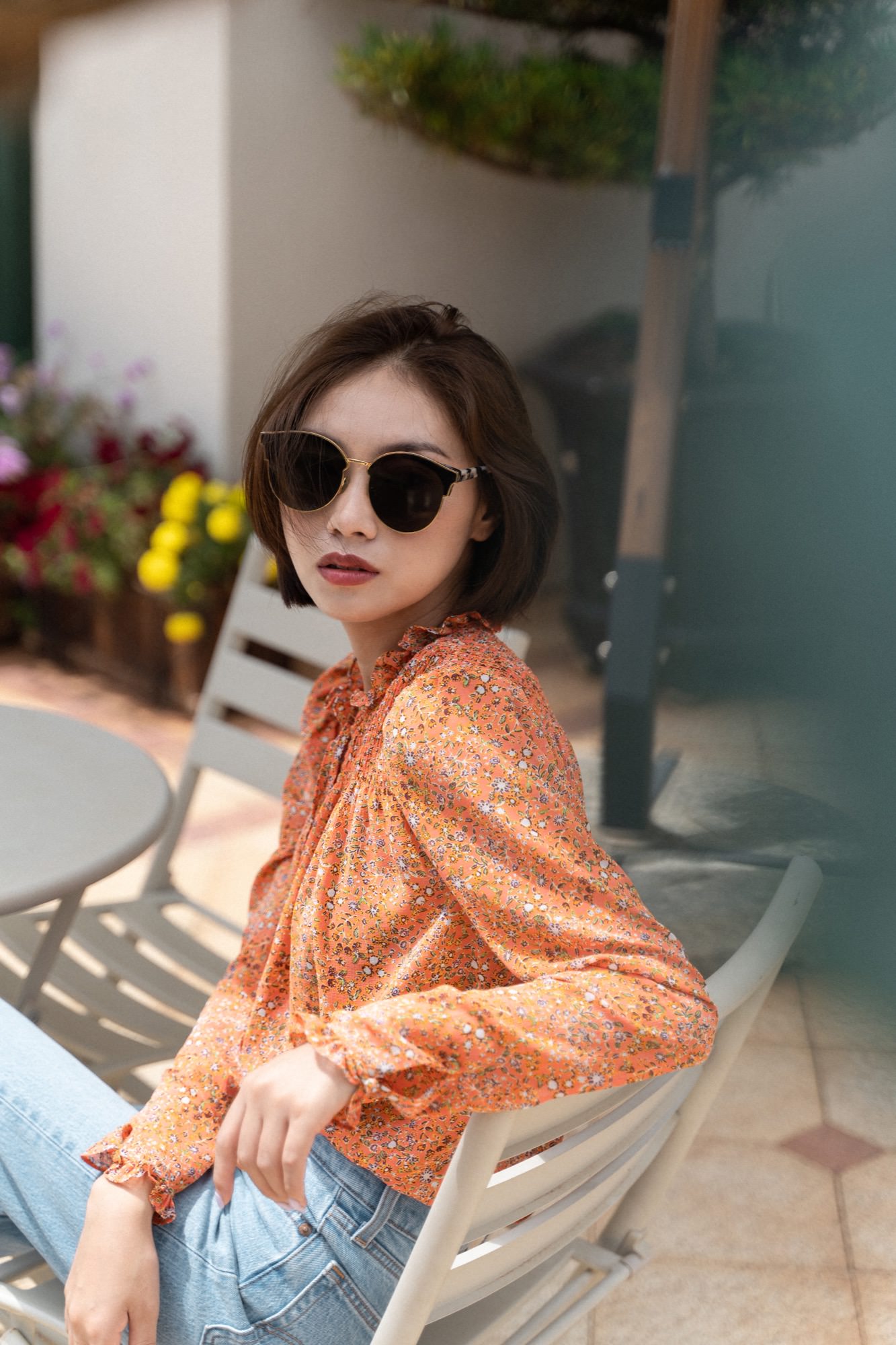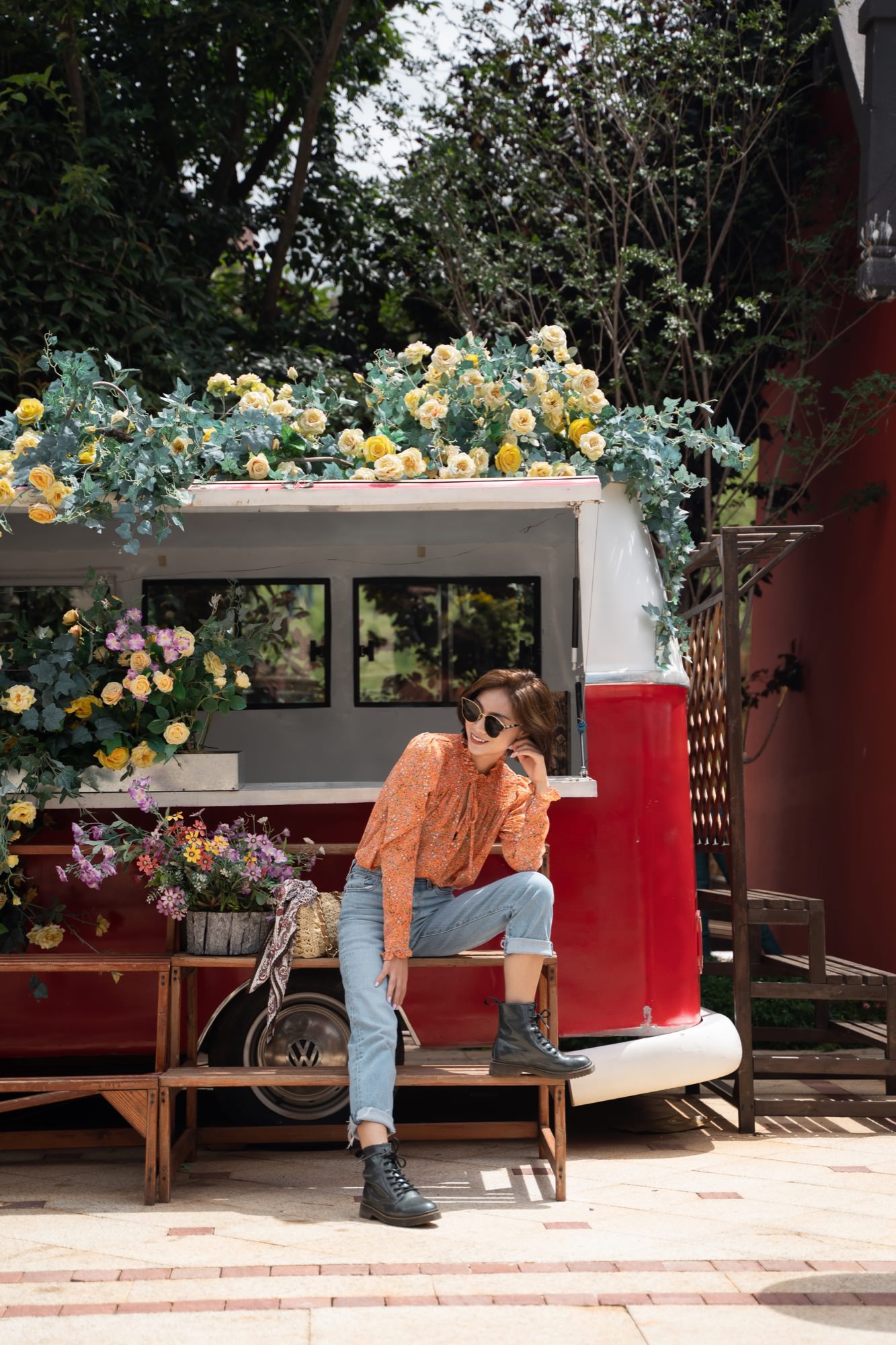 云南海拔高,阳光强烈,必备墨镜,在小镇里跟老婆走走拍拍。