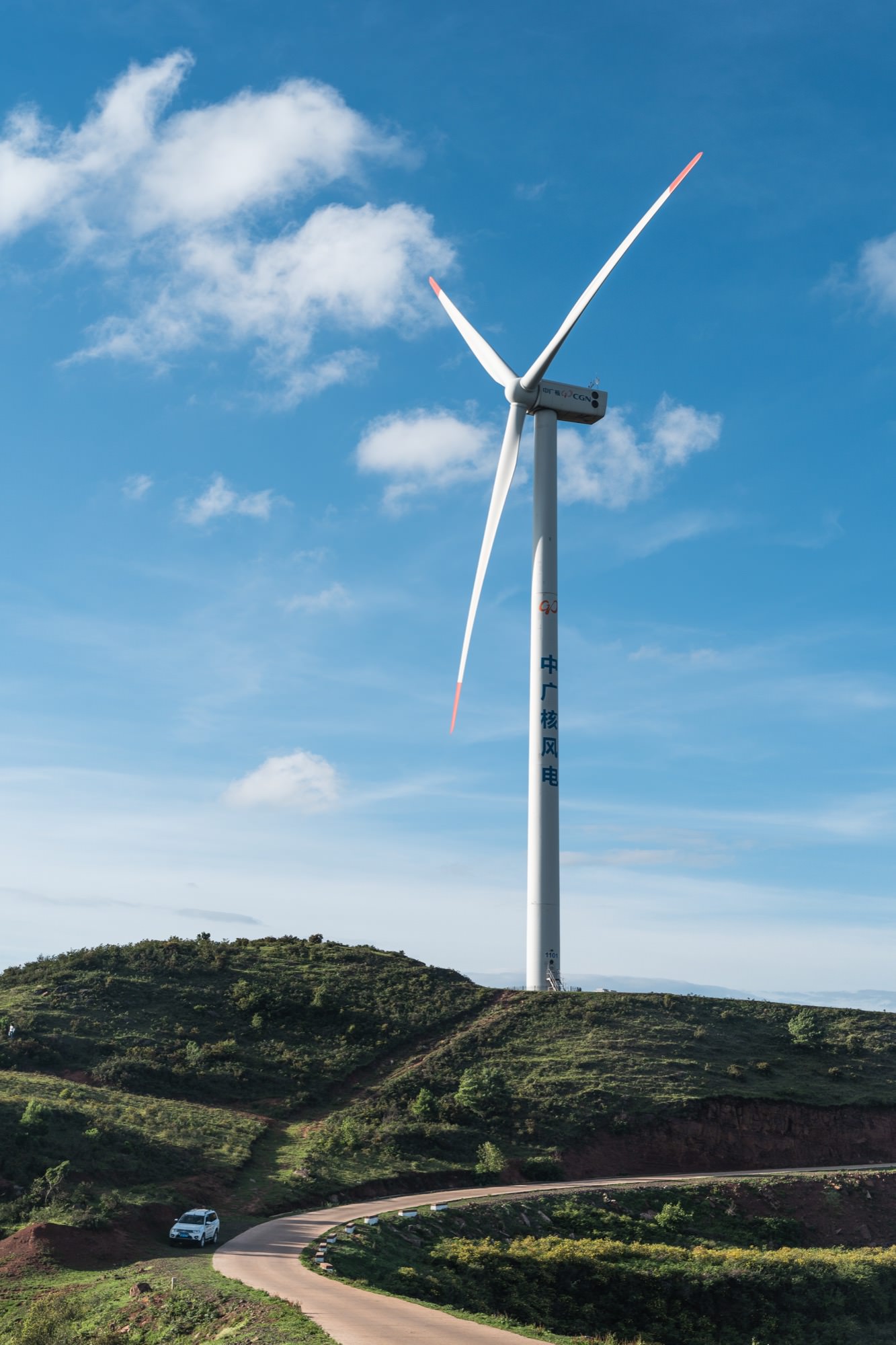 磨豆山顶有一个中广核集团的风力发电厂,还有全国最大新能源科普教育基地。