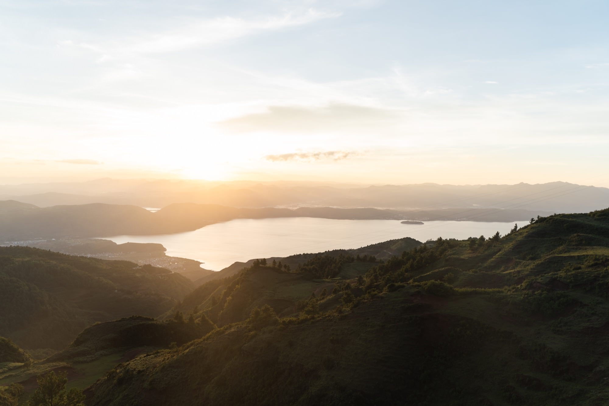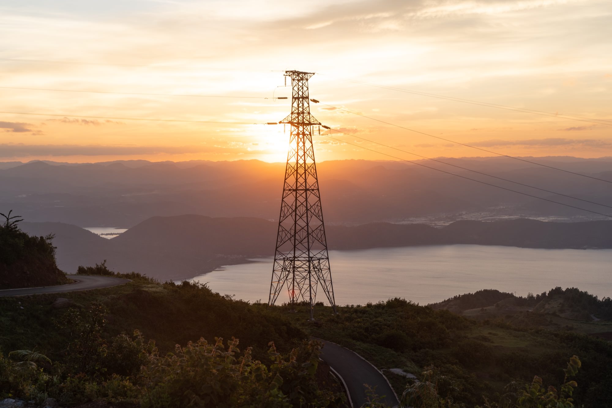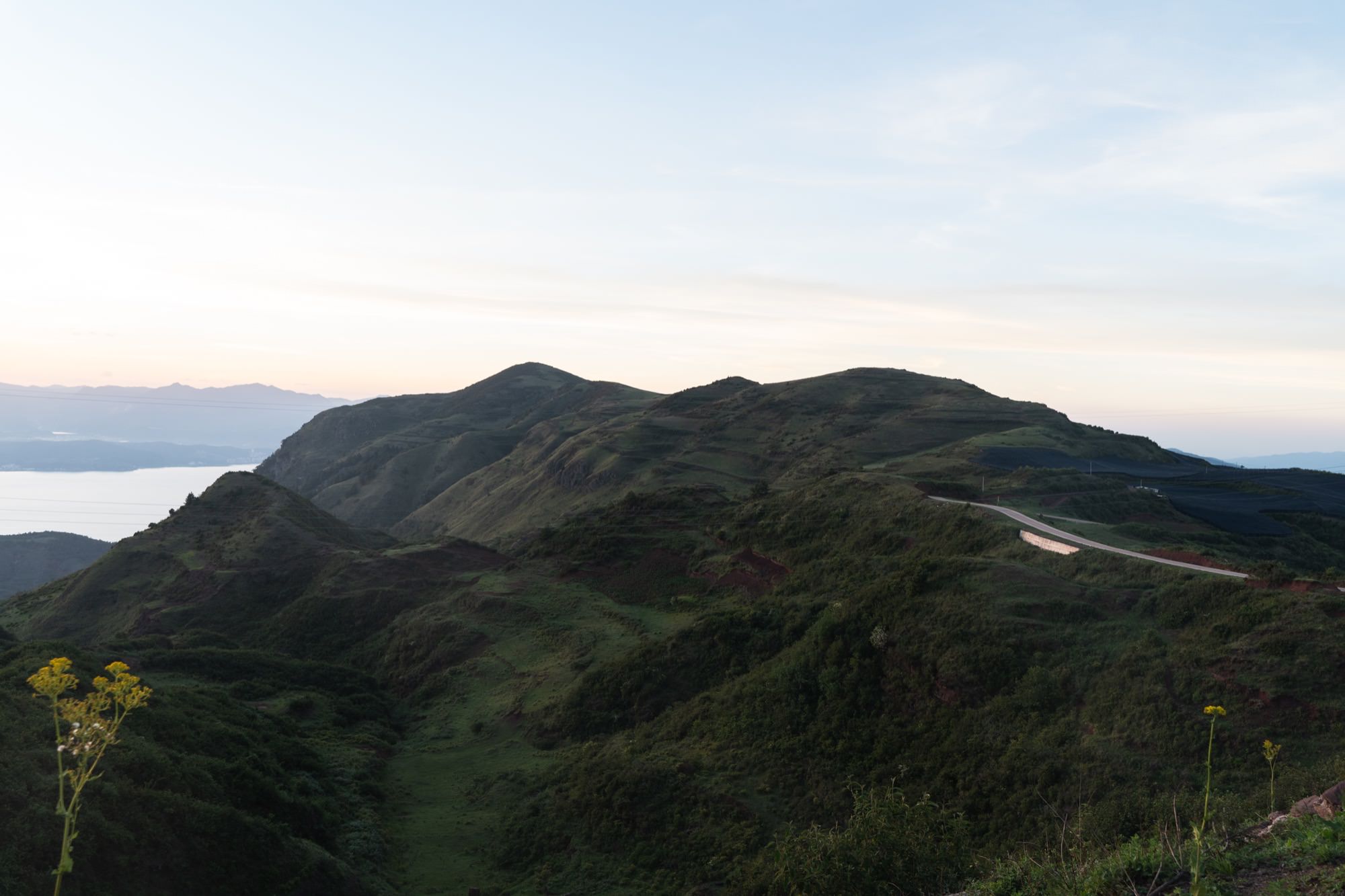 落日下的电塔,让我想起了旧金山的双子峰的日落。看完日落,已经将近晚上8点(云南天黑就是这么晚),还没吃晚饭,接下来就是驱车回酒店了。由于下山也是山路,回去酒店路上,也都是乡道,基本没有路灯,路并不是很好开。我今天从早上10点开始自驾,到现在已经开了一整天车,到晚上时我就很累了,多亏了老婆换着开了一段,要不在这种路段,疲劳驾驶还是很危险的。