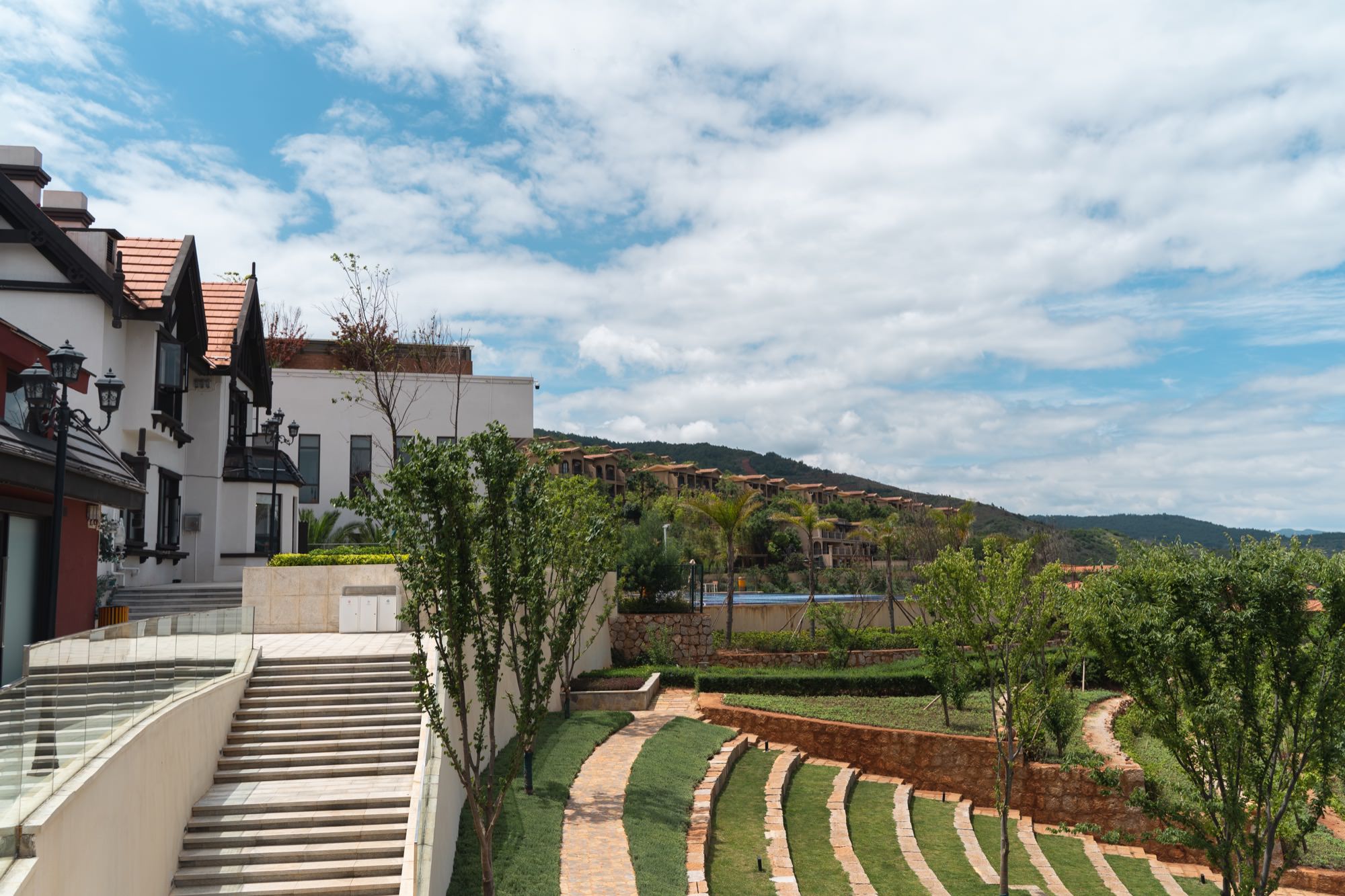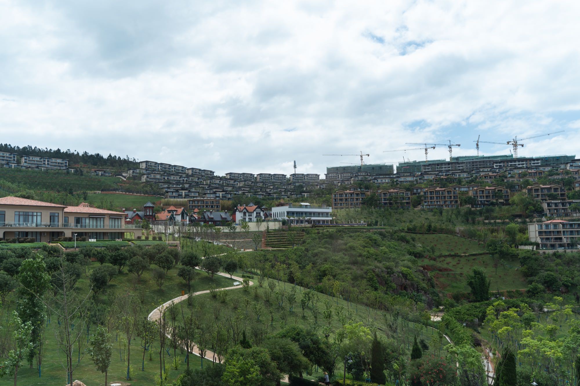 这里是一处正在建设的旅游地产项目,叫「星空小镇」,不同于网红小镇那边欧式风格,这边的建筑更现代风点。