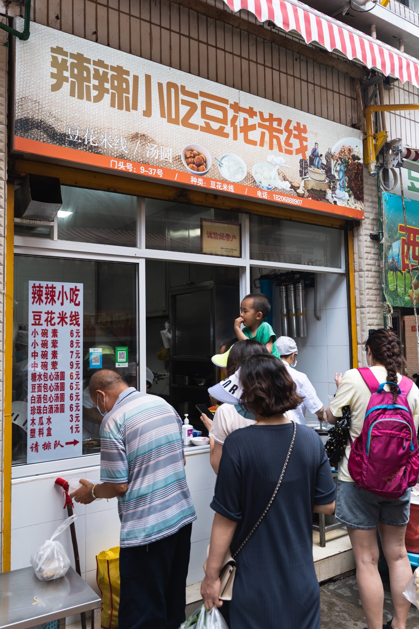 看到一家豆花米线,很多人在排队买。