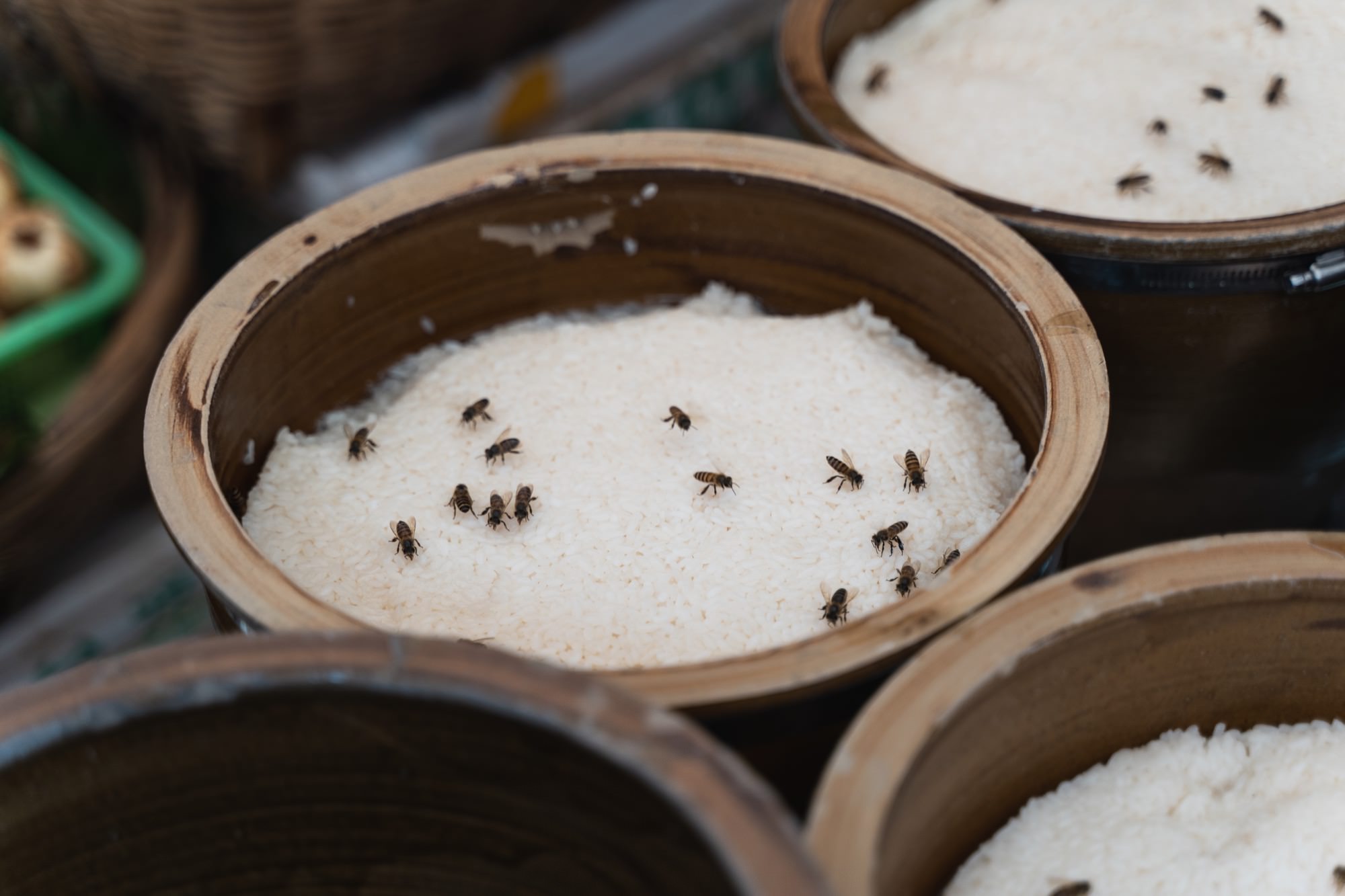 看到一种当地米酒,很有特色的是,还有蜜蜂飞来飞去,我一开始没看清,还以为是苍蝇,还跟老婆说「哇,这里怎么这么多苍蝇呀」,被旁边的大妈给白了一眼,眼瞎是我的错。后来我还特意观察了一下,虽然市场里各种卖生肉、熟食的,但是我还真的没见到苍蝇什么的,卫生条件很不错。
