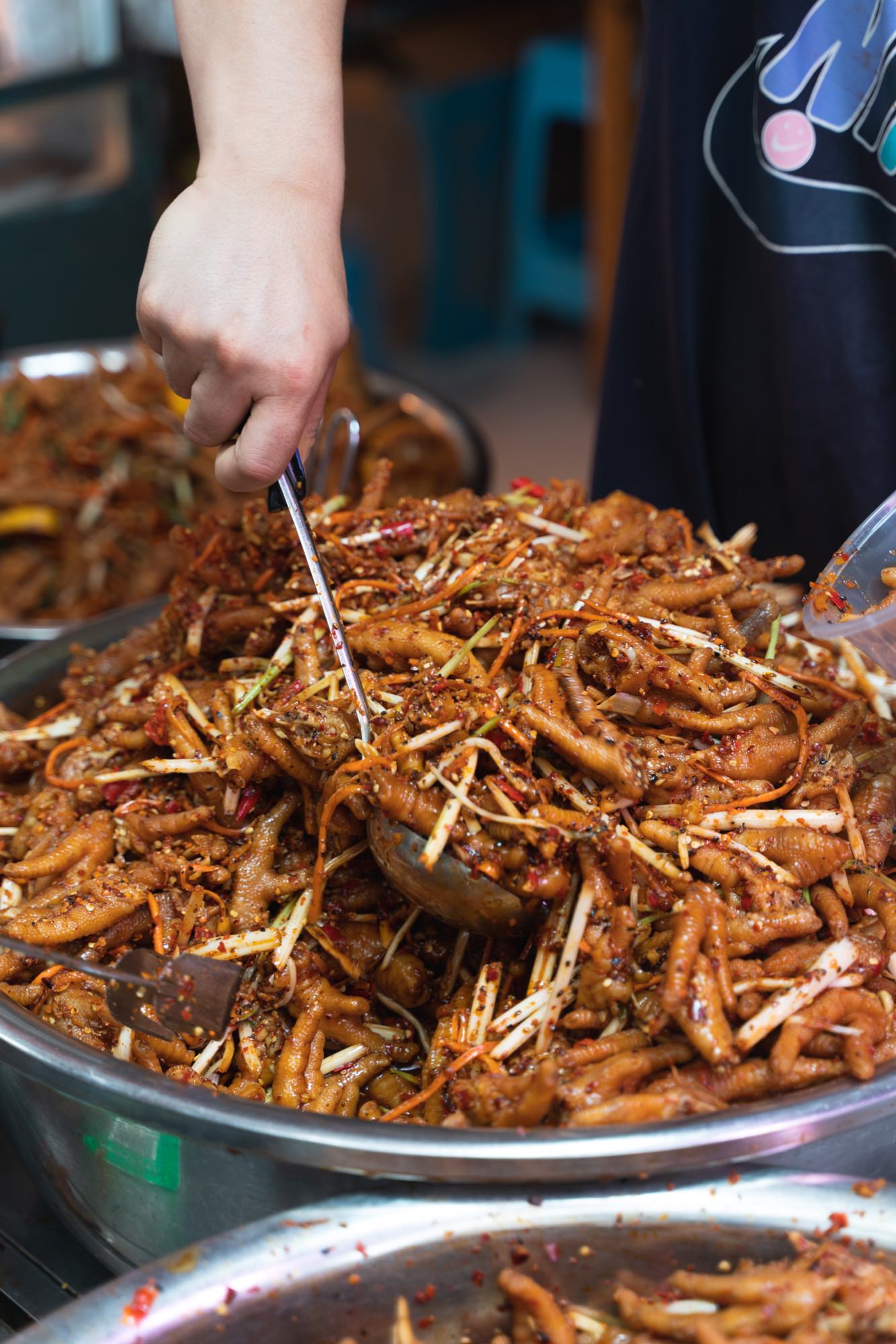 发现一个鸡爪新做法,傣式风味,酸酸辣辣,老板见我们在拍摄,还专门介绍了一番。
