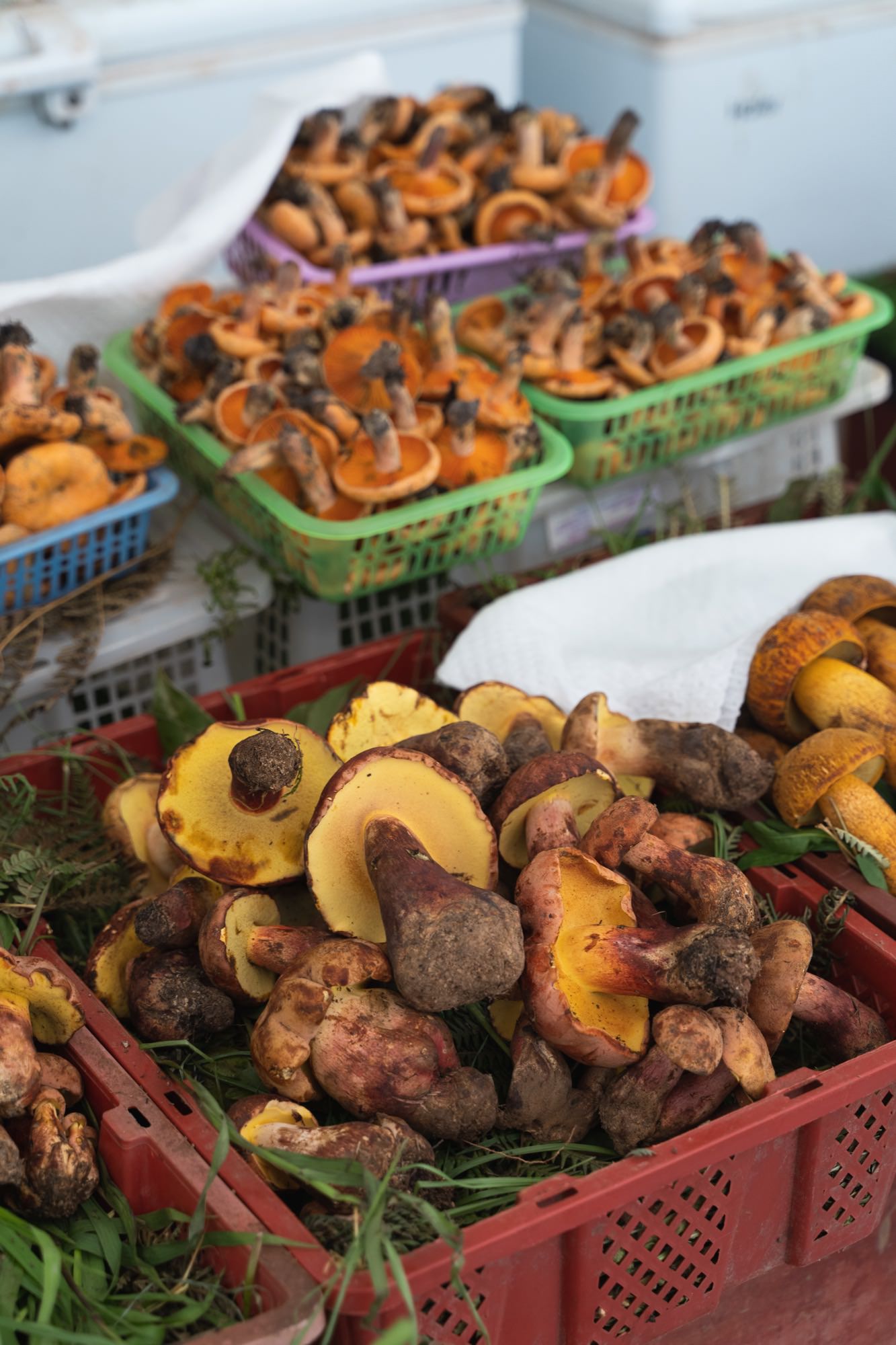 农贸市场二楼,还有一个专门的「野生菌交易市场」,云南盛产菌菇,问了下价格,从几十元到几百元不等,再贵的没敢问。