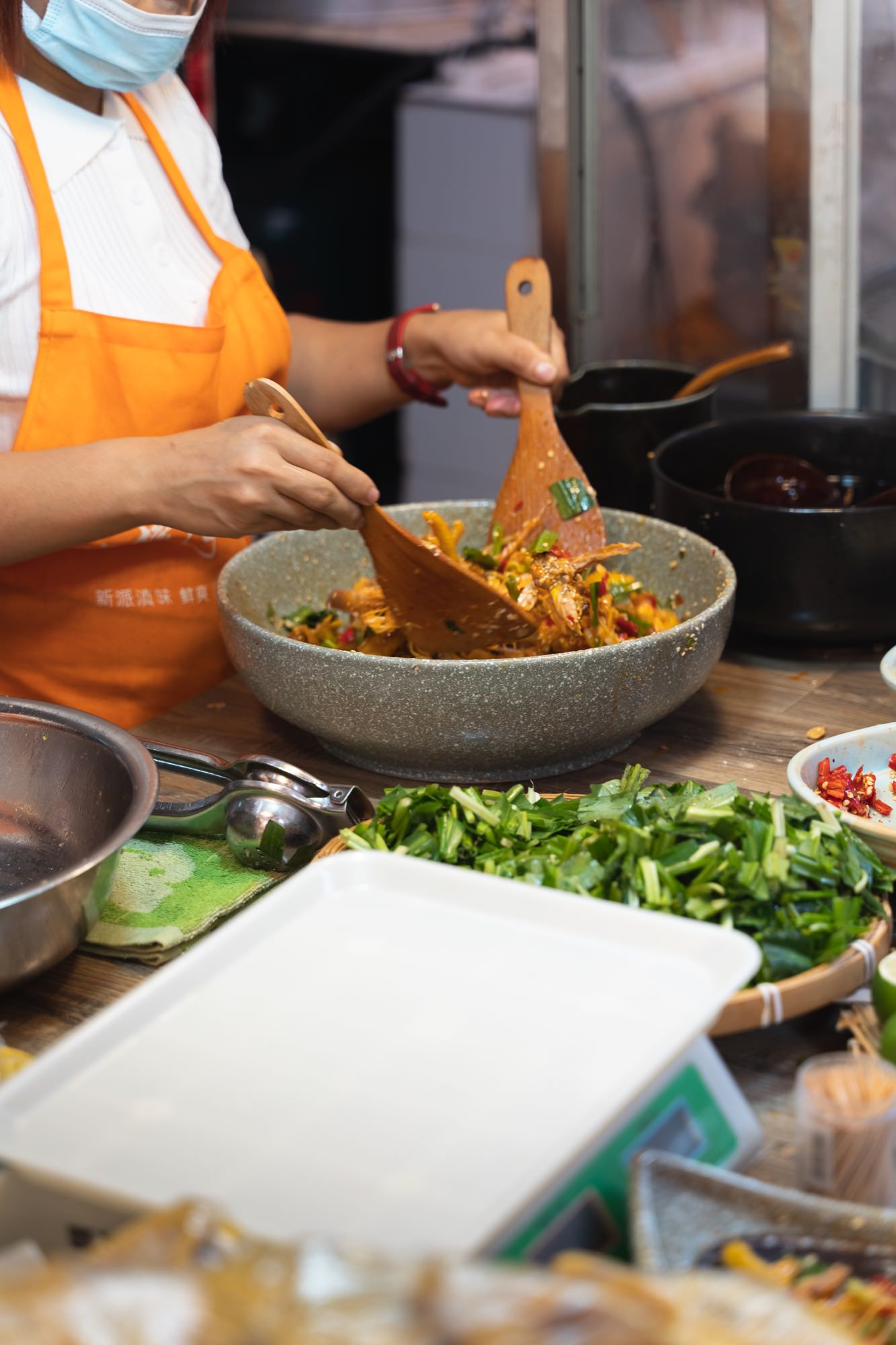 又发现一个有特色的「柠檬手撕鸡」,现场手撕,配上香料搅拌,闻起来就很香,口水直流,买了半盒才20块。