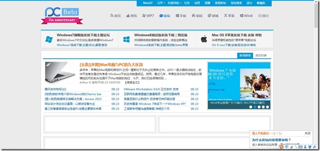 pcbeta就不多介绍了,中文技术圈著名论坛,windows和os系统大量发烧专业级折腾,N多软件下载破解、系统技巧分享(这段时间破解windows8消息太多,被微软致函警告了,可怜啊)。