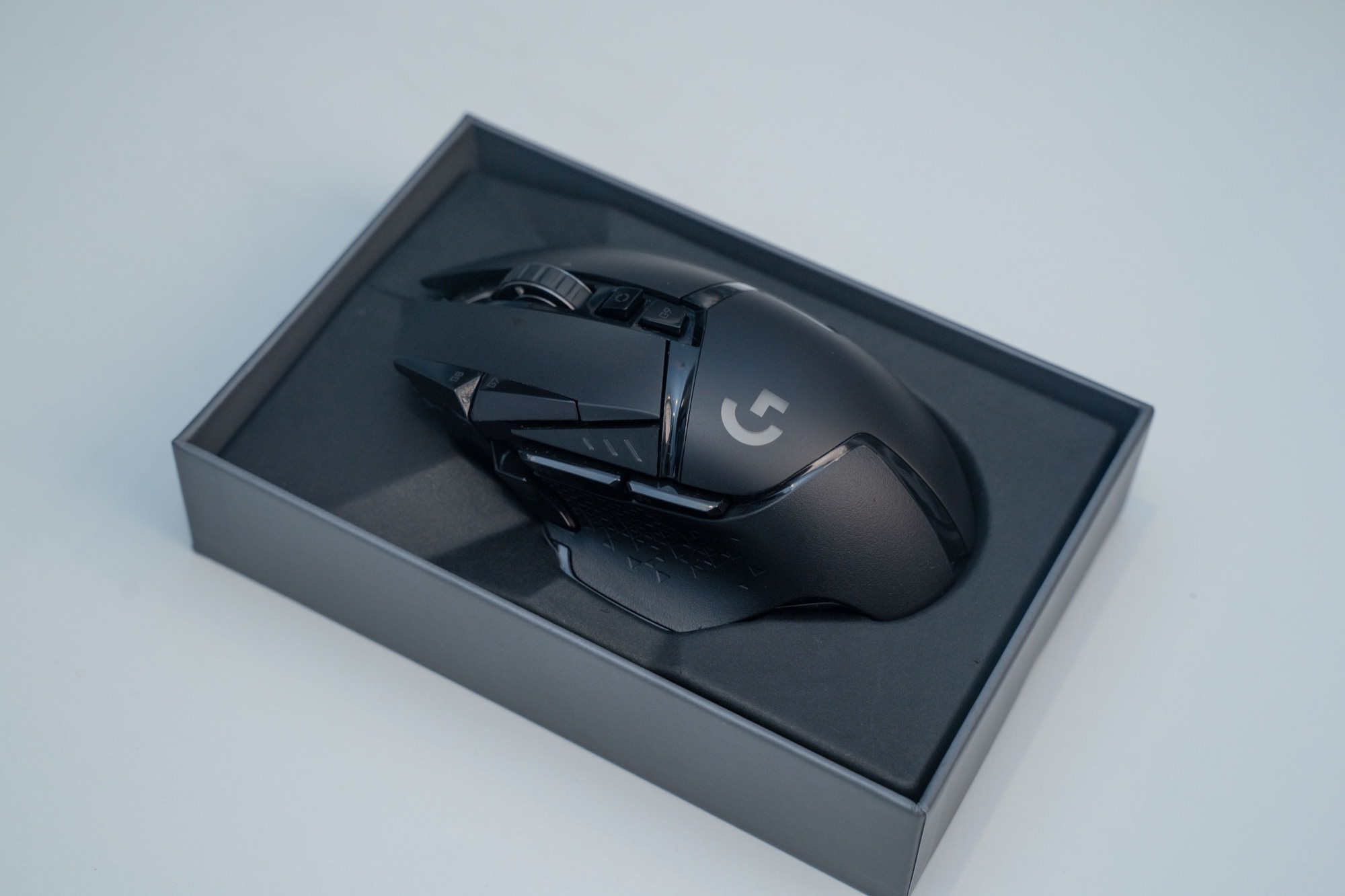 打开盒子就是 G502 无线版本体,经典的502造型,带有棱角的按键,我个人还是挺喜欢这种设计的。