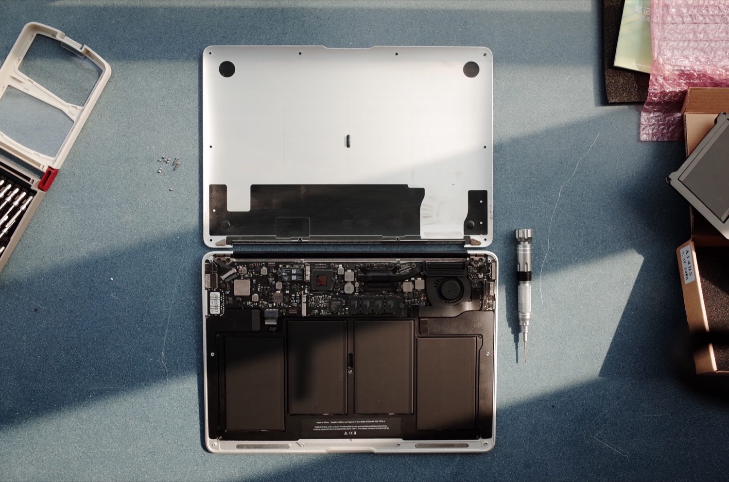相比清洁风扇,换Macbook电池可以算是很简单了,只需要合适的工具,注意不要丢失螺丝,不要乱碰主板上的东西就可以了。