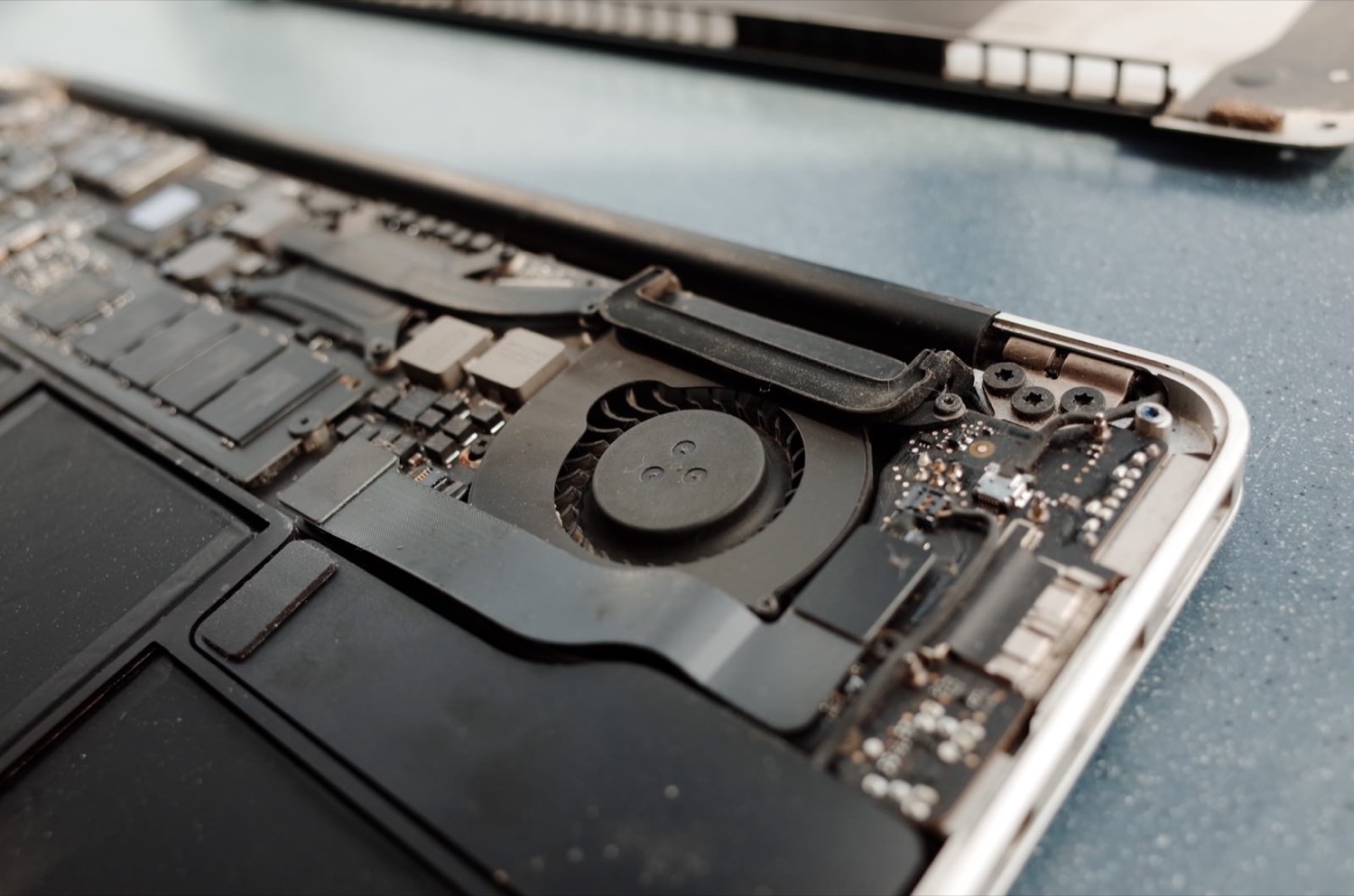 这里是Macbook的散热器,换电池不需要拆散热器,若你觉得脏,也可以参考螺丝的位置,酌情拆装清洁。