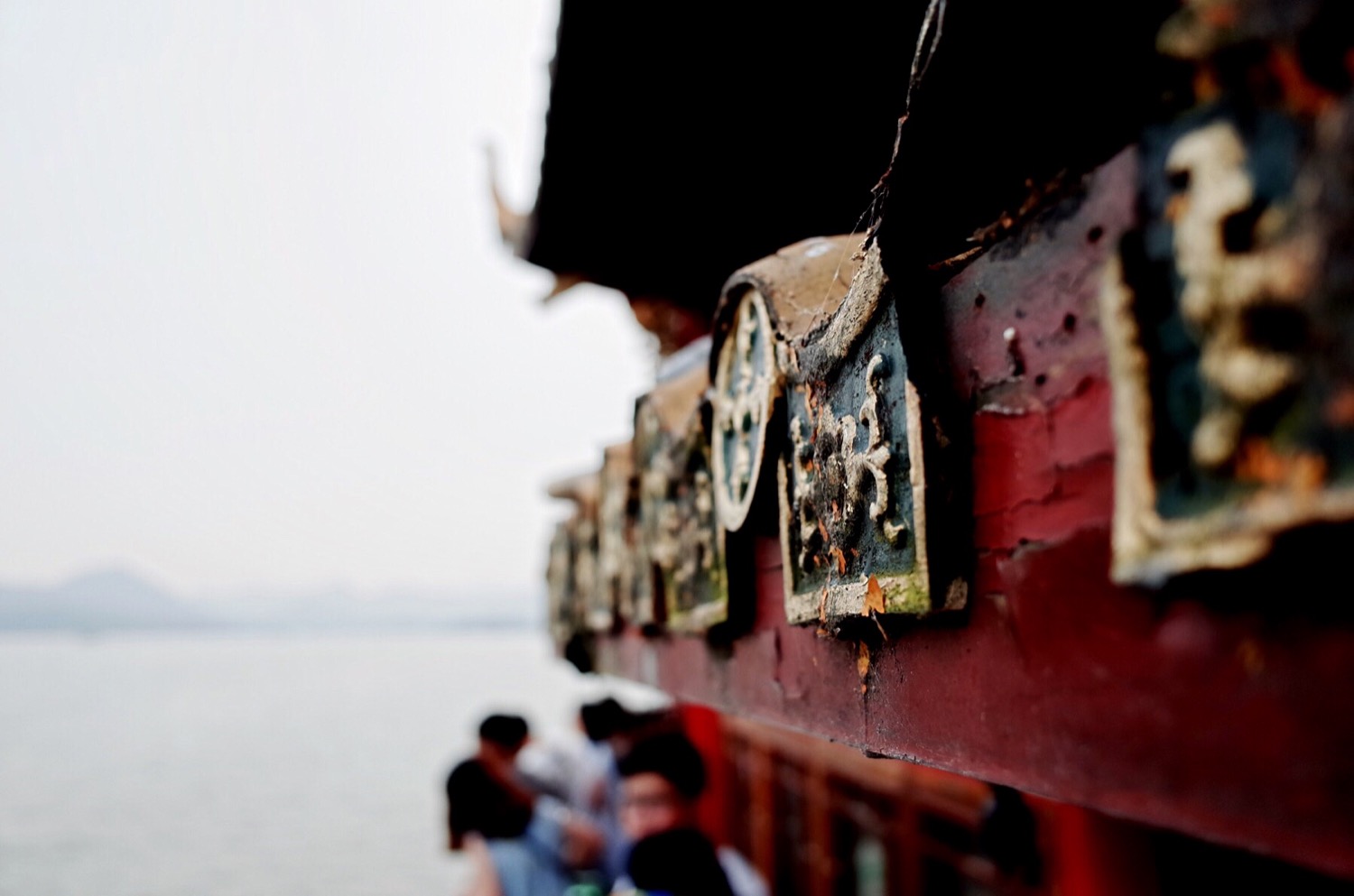 在西湖北边和东边走了一段路,想着这湖边人也太多了,还是买票上岛吧,坐船开往三潭印月。船上人也不少呢。